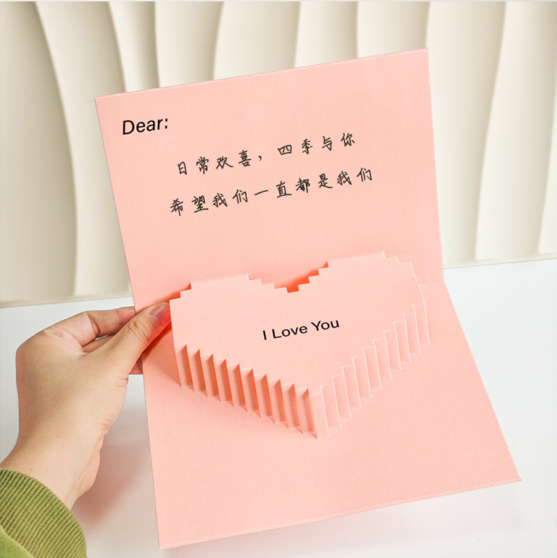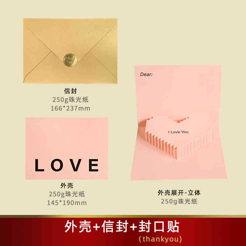 발렌타인 데이 인사말 카드 창조적 인 3 차원 하이 엔드 핑크 소녀가 남자 친구를 보내는 작은 카드 축복 생일 인사말 카드스토어 가기