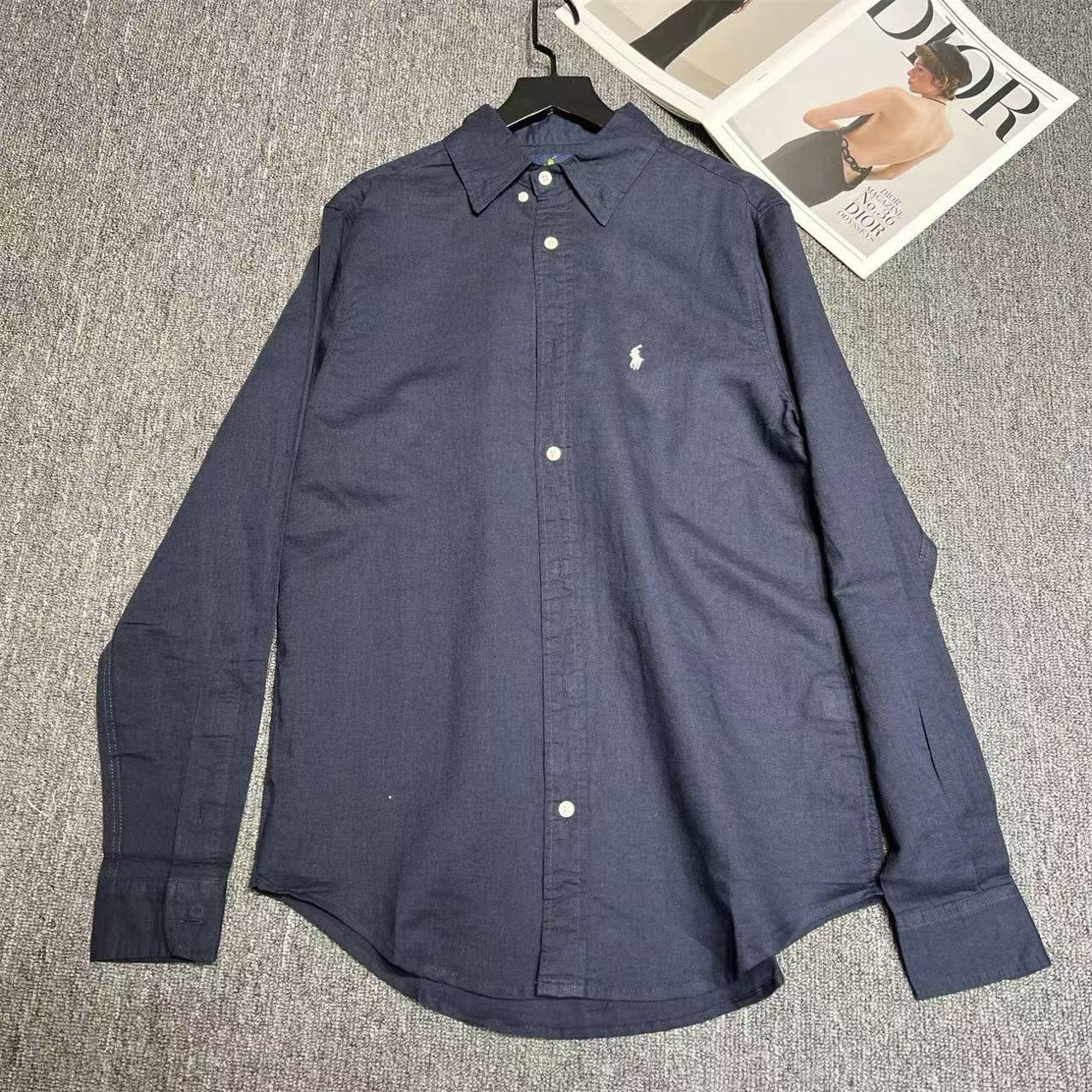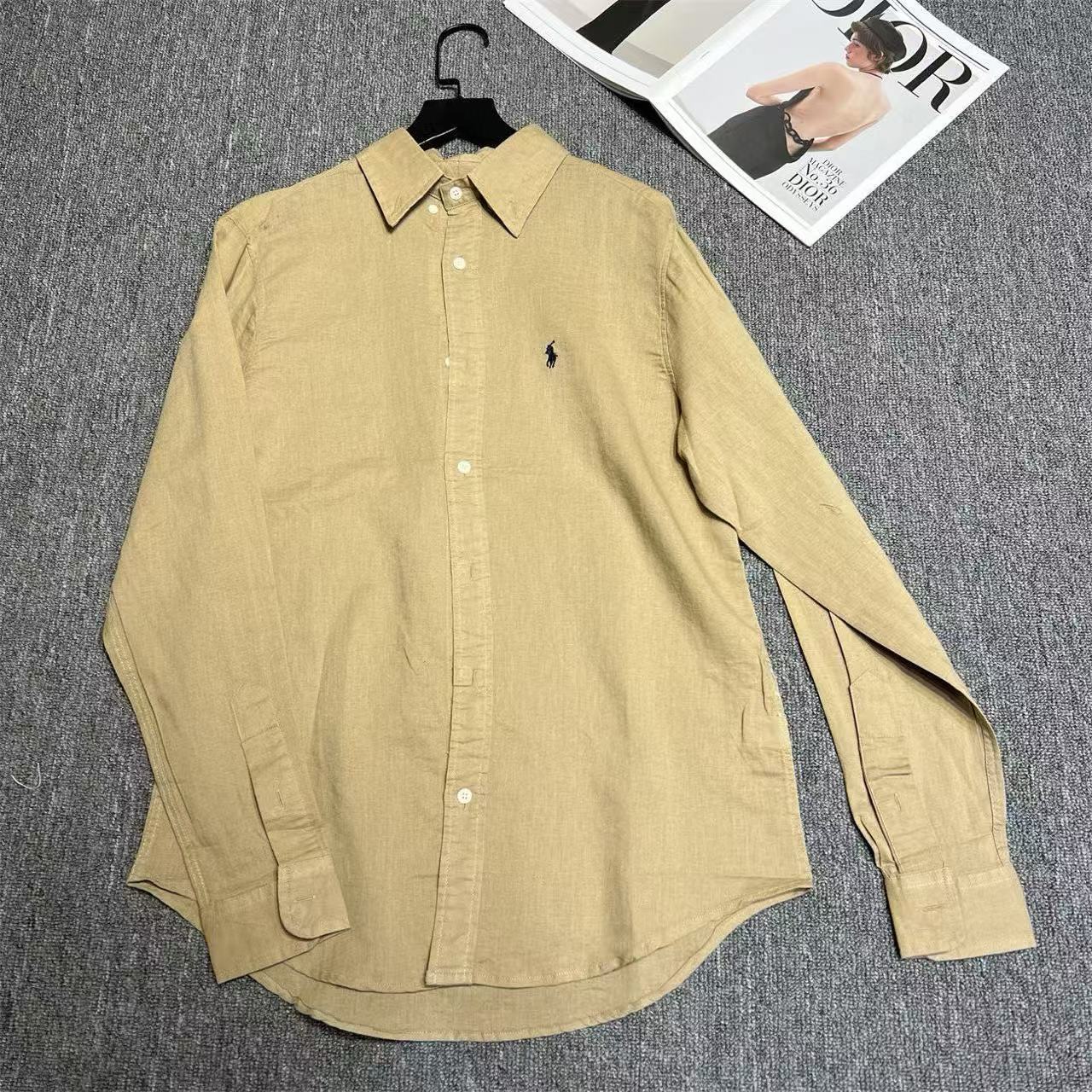 남성과 여성을 위한 크로스보더 RL 스캔 가능한 라프 린넨 셔츠, 포니 로고 자수 올드 머니 트렌드 브랜드 코튼 및 린넨 셔츠