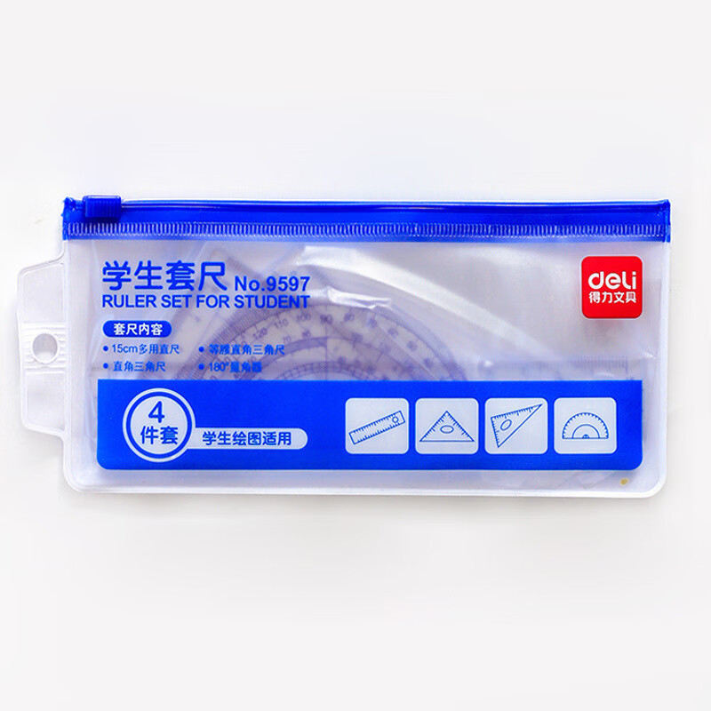 델리 학생 통치자 9597 정품 그리기 세트 15cm 통치자 45 도 30 도 삼각형 통치자 도장스토어 가기