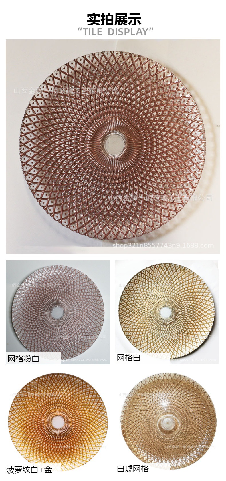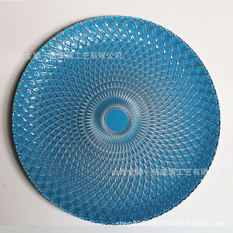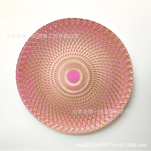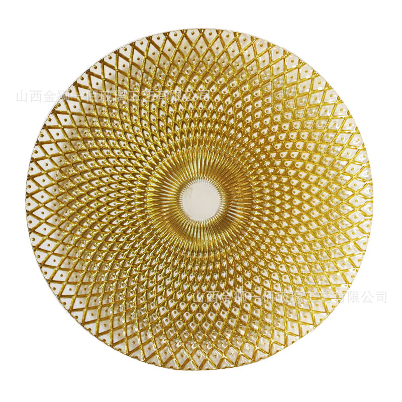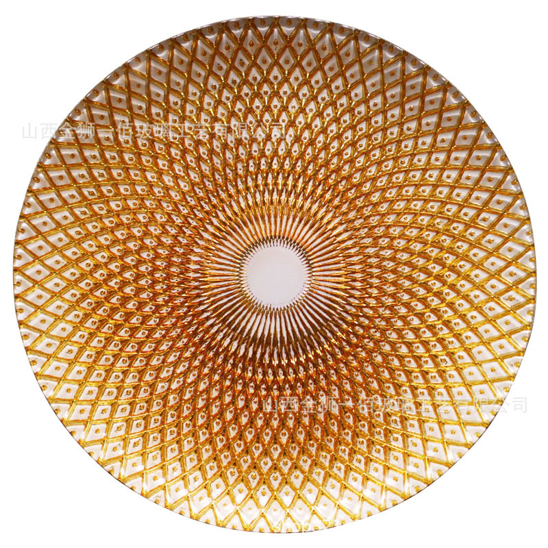 유럽 스타일 엔트리 럭셔리 크리스탈 유리 플레이트 핀치 테일 패턴 골드 그린 과일 플레이트 라운드 웨스턴 플레이트 장식 플레이트 연회 섀시스토어 가기