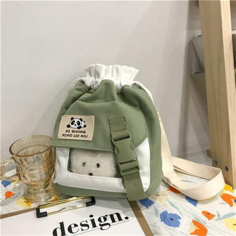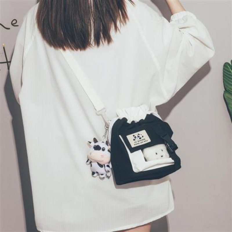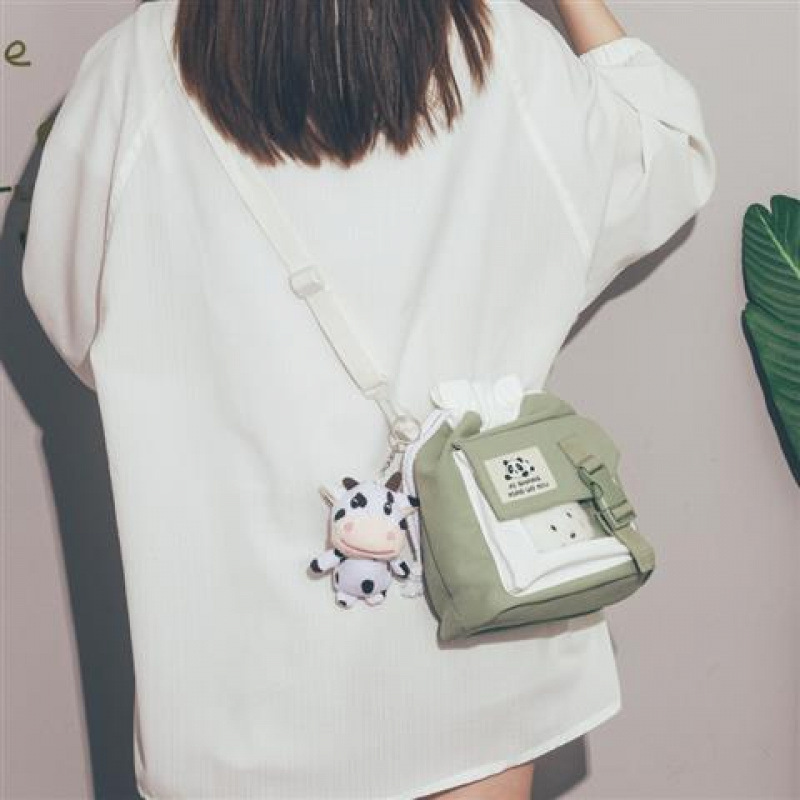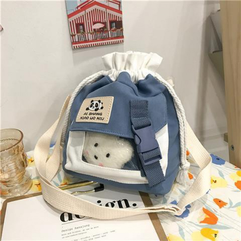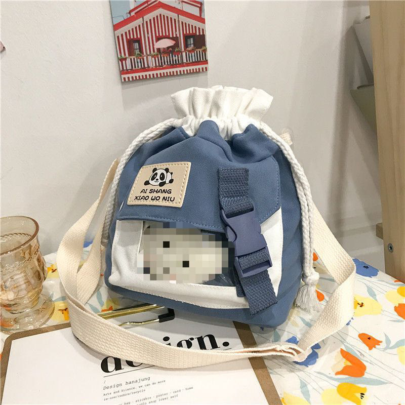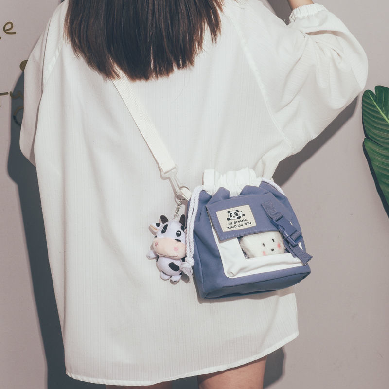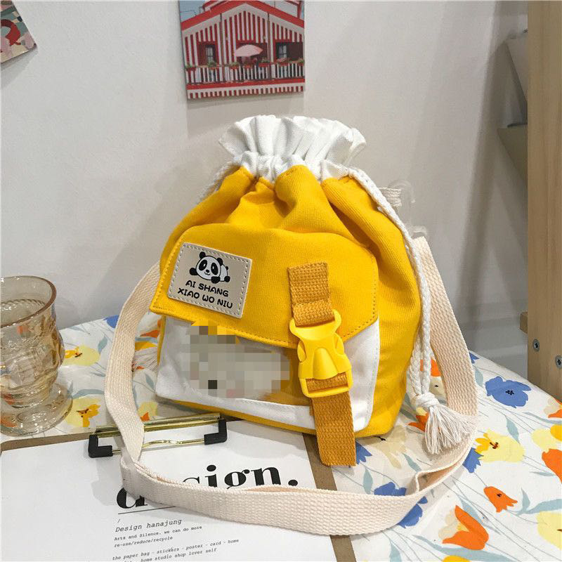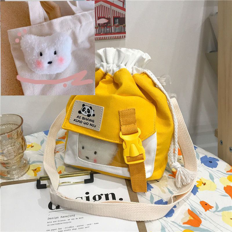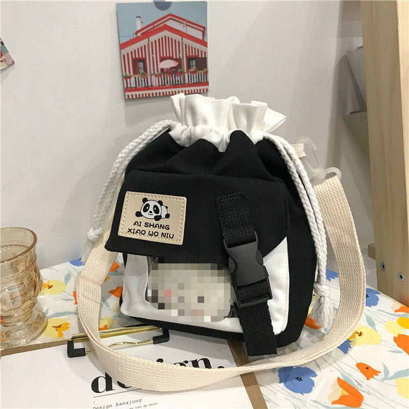 한국 인치 귀여운 작은 가방 2025 새로운 유행 일본 캔버스 크로스 바디 가방 소녀 학생 어깨 버킷 가방스토어 가기