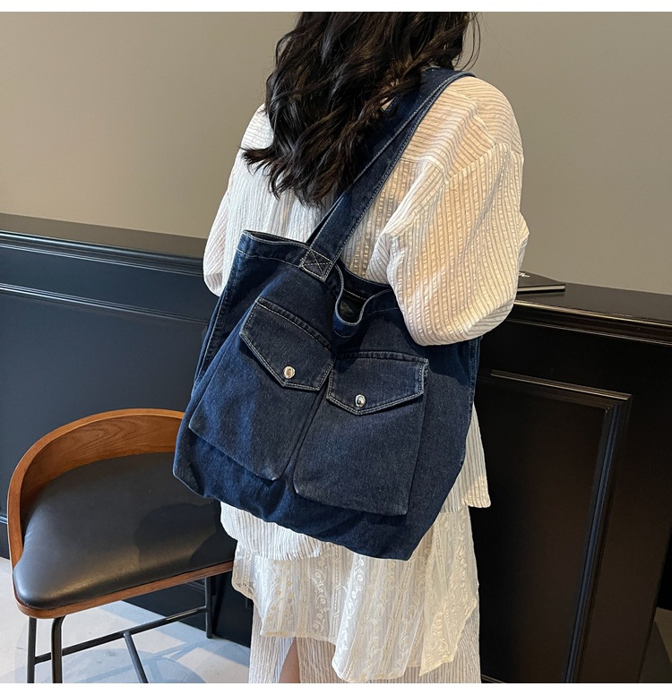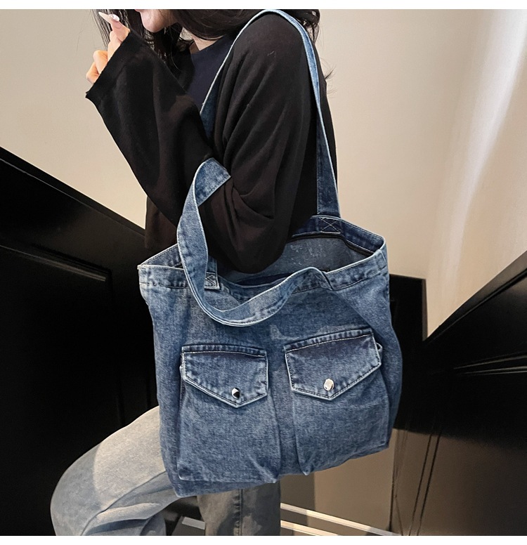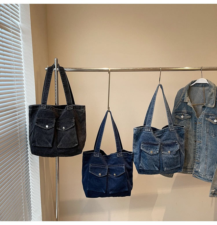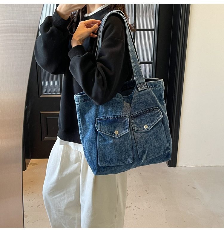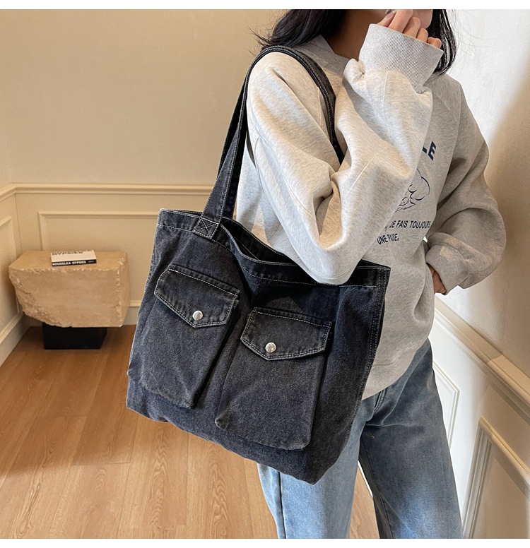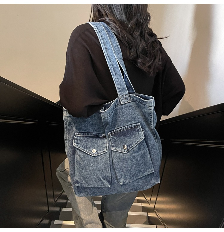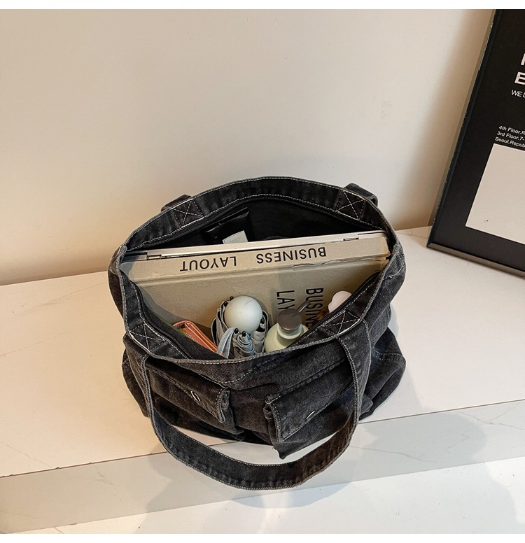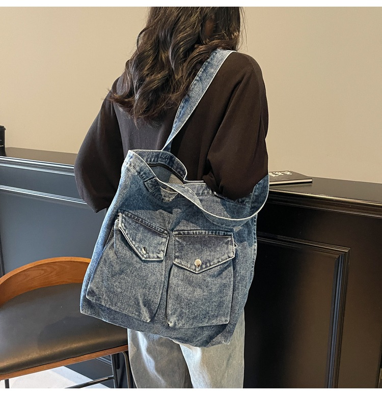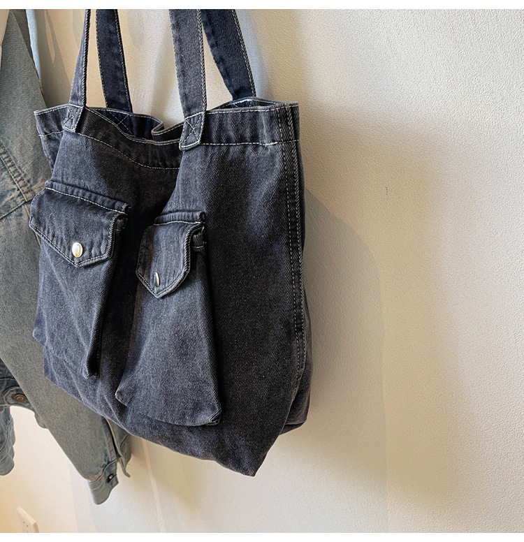 게으른 스타일 데님 캔버스 가방 여성 2025 새로운 패션 멀티 포켓 어깨 가방 토트 가방 대학생 학교 가방스토어 가기