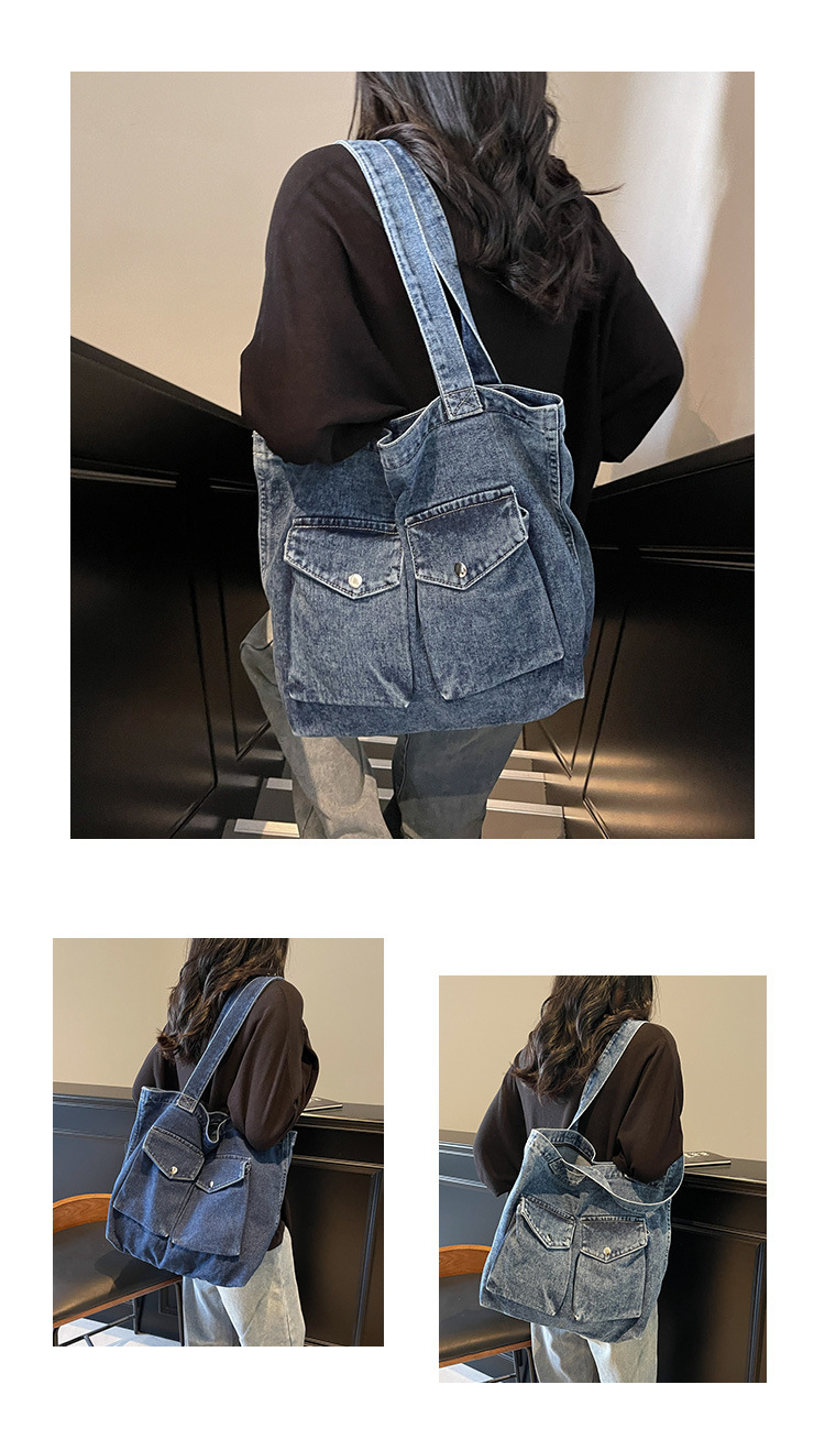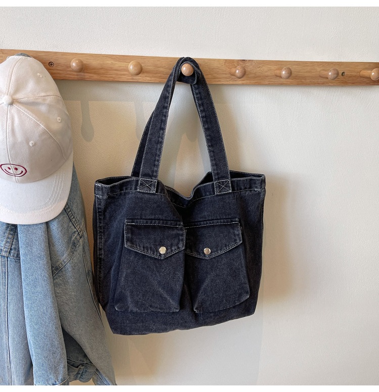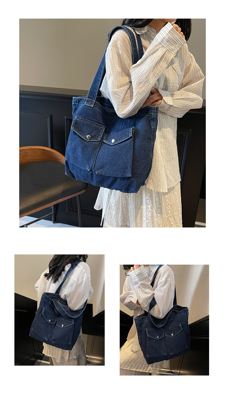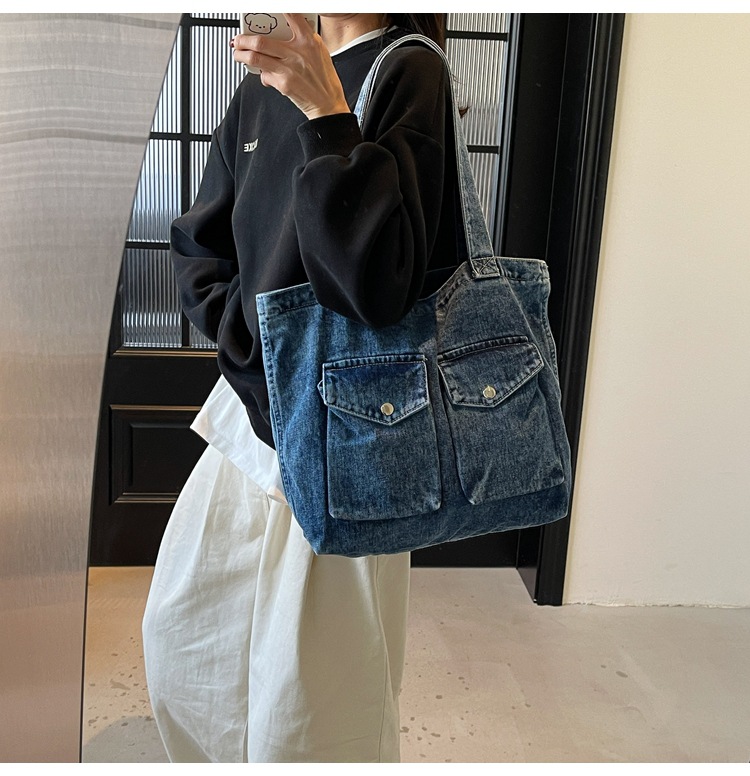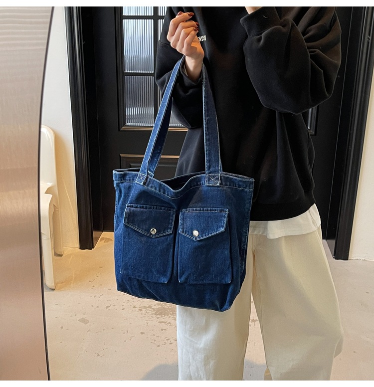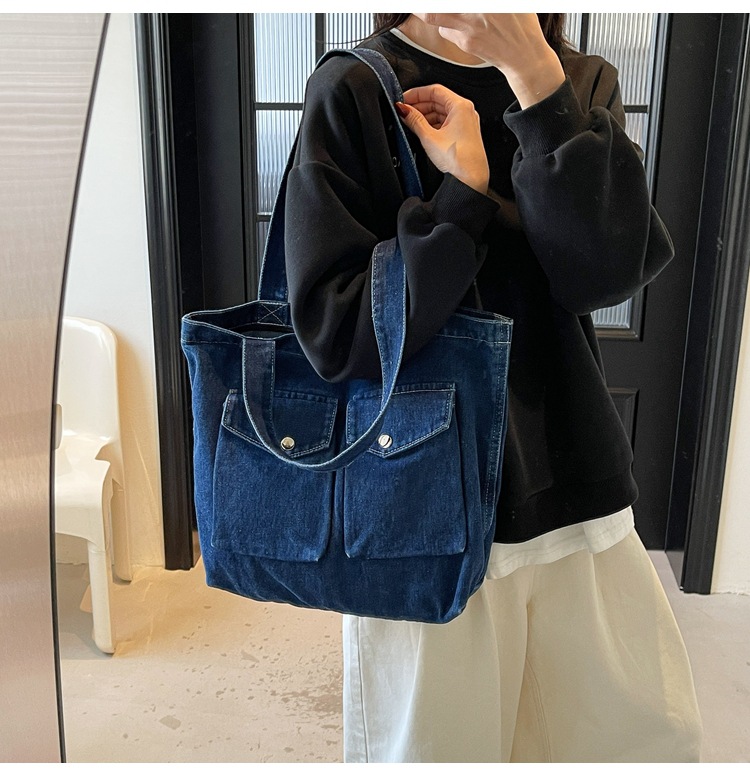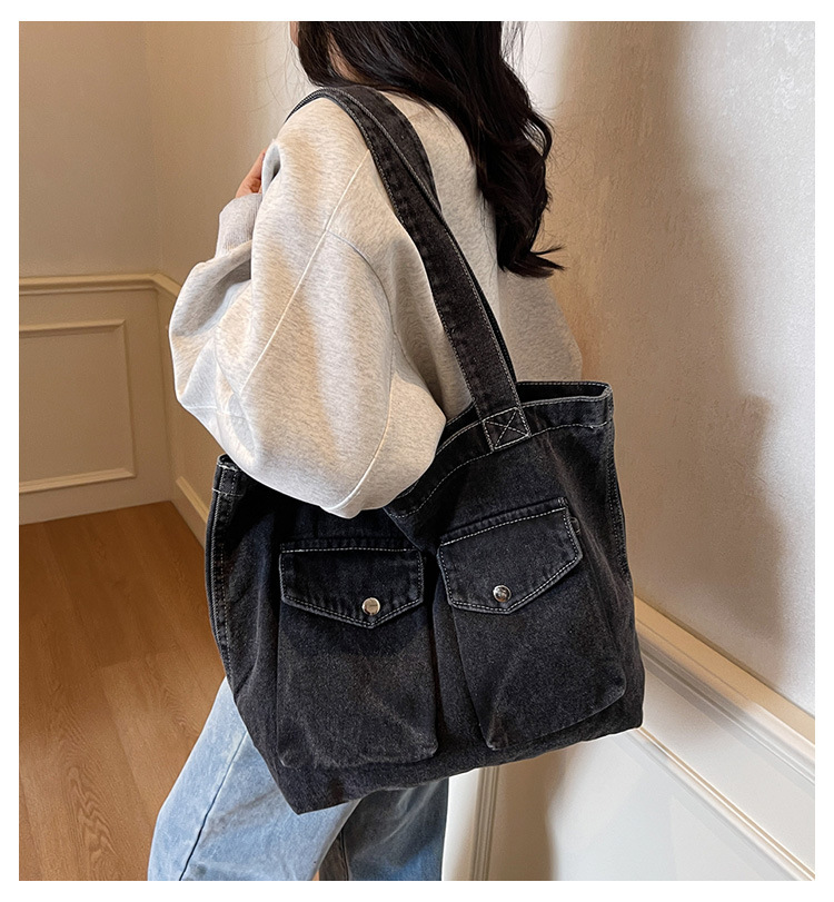 게으른 스타일 데님 캔버스 가방 여성 2025 새로운 패션 멀티 포켓 어깨 가방 토트 가방 대학생 학교 가방스토어 가기