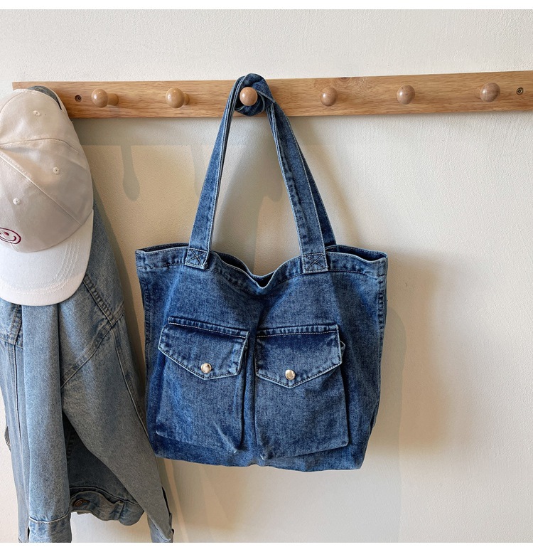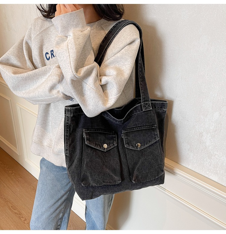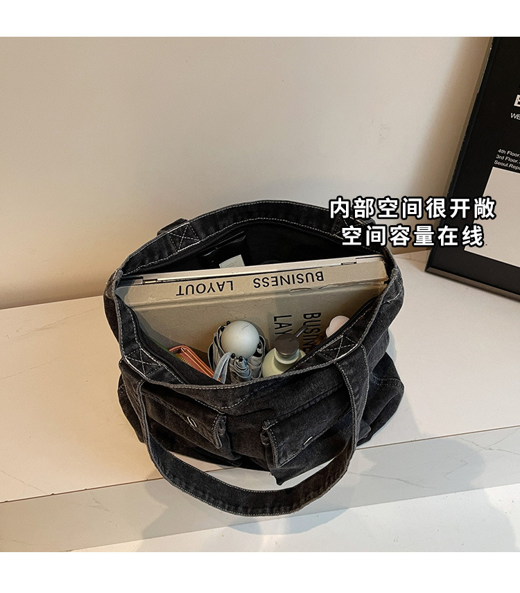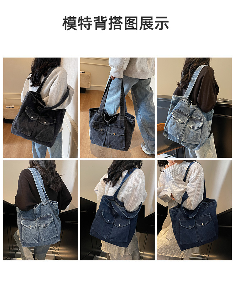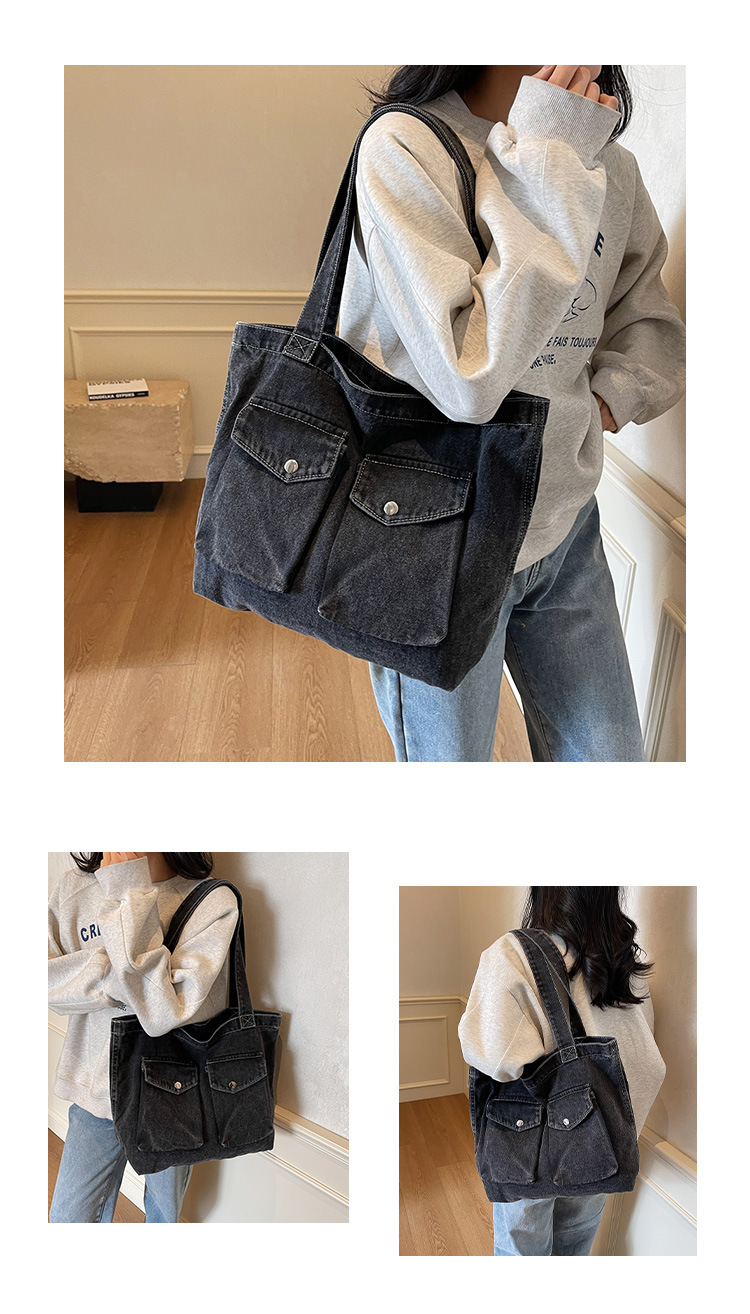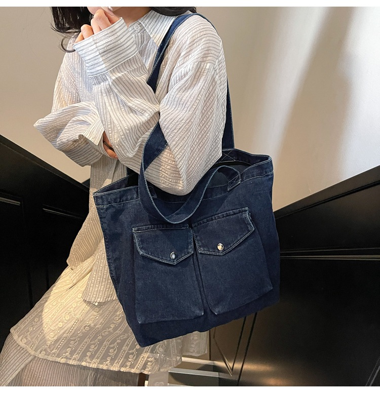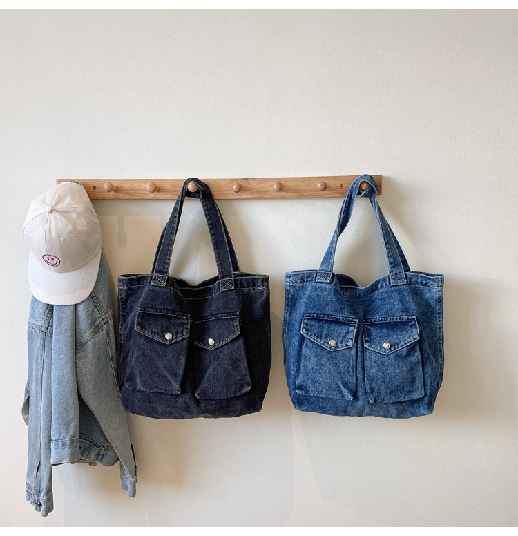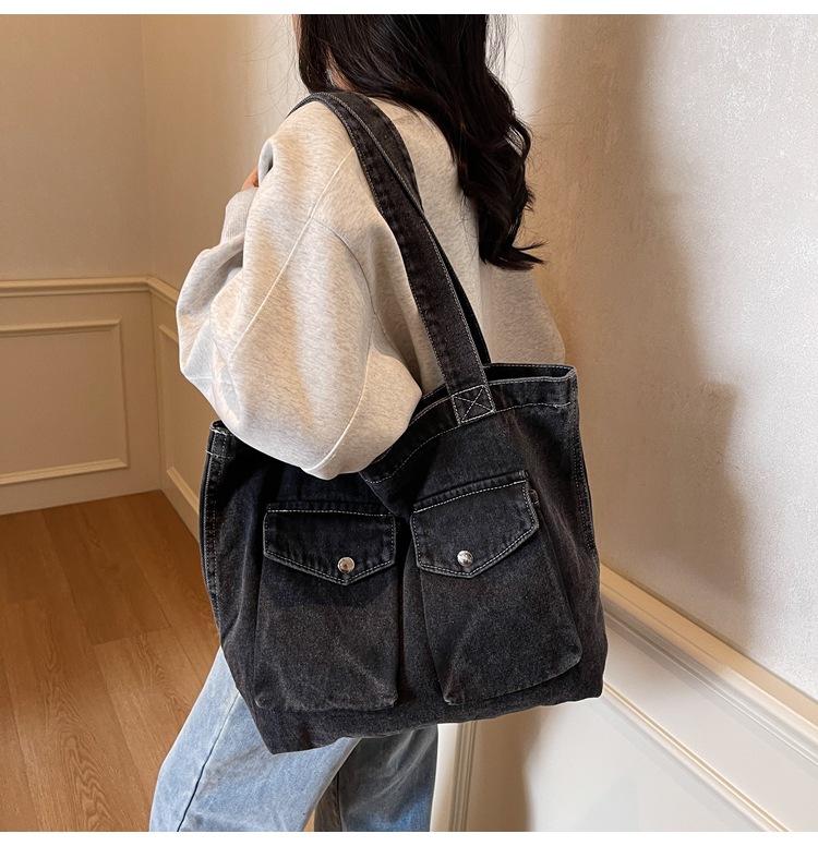 게으른 스타일 데님 캔버스 가방 여성 2025 새로운 패션 멀티 포켓 어깨 가방 토트 가방 대학생 학교 가방스토어 가기