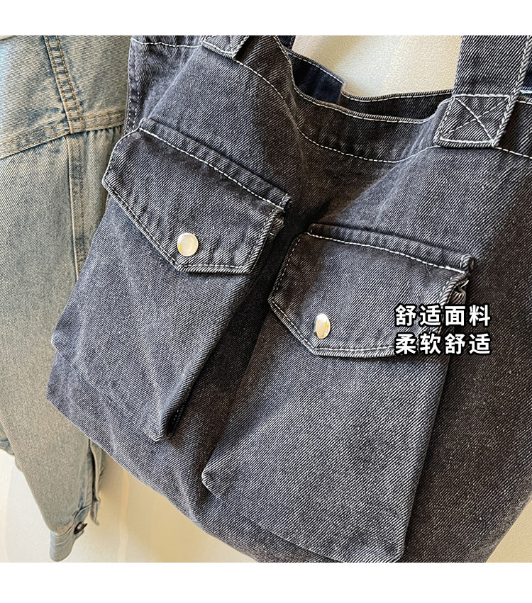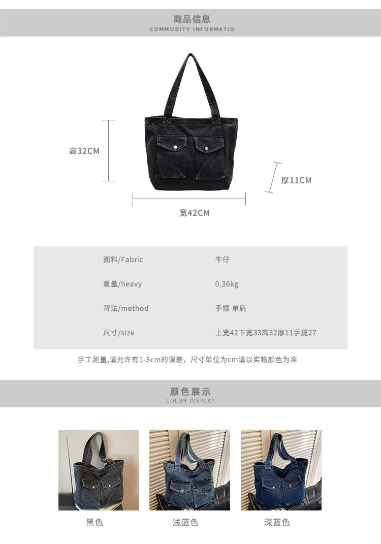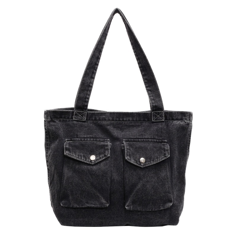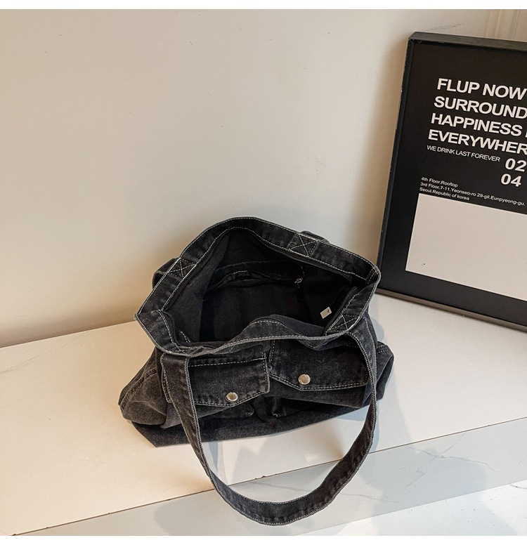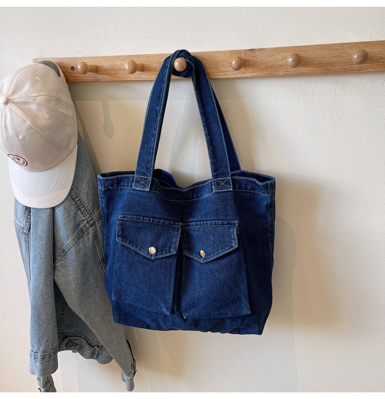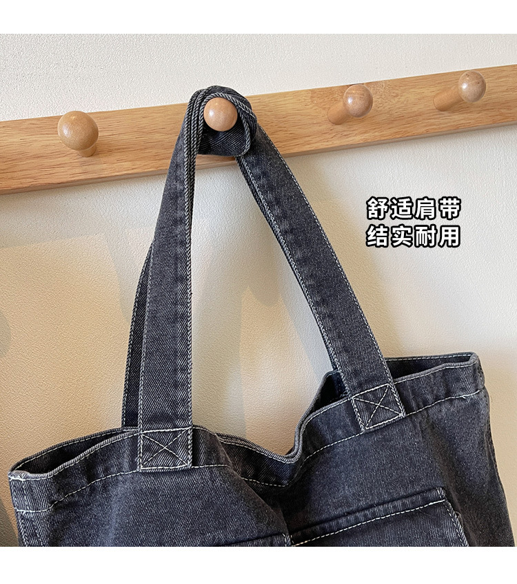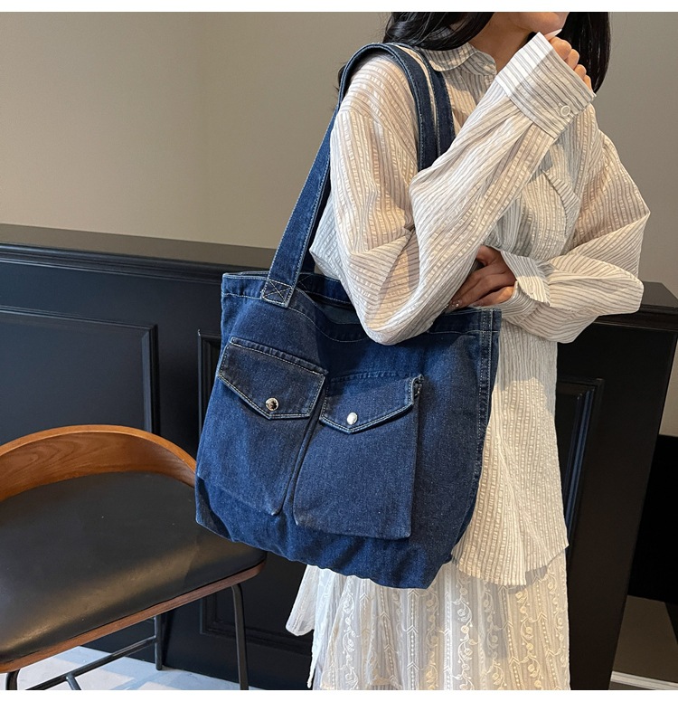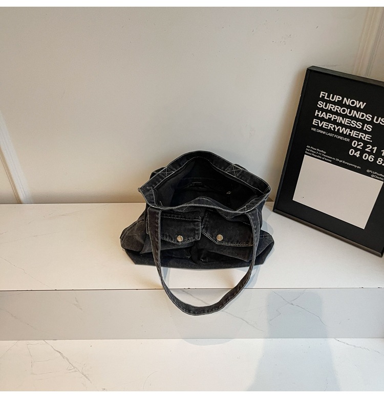 게으른 스타일 데님 캔버스 가방 여성 2025 새로운 패션 멀티 포켓 어깨 가방 토트 가방 대학생 학교 가방스토어 가기