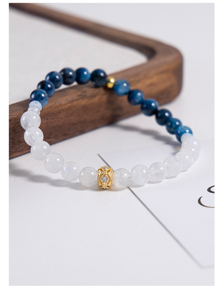새로운 중국 스타일의 블루 크리스탈 화이트 달빛 구리 도금 진짜 금 상감 지르콘 팔찌 여성을위한 중국 스타일 팔찌스토어 가기