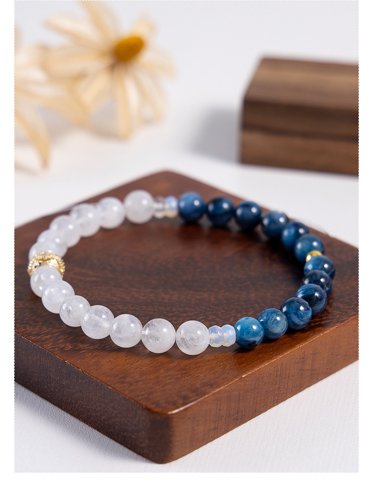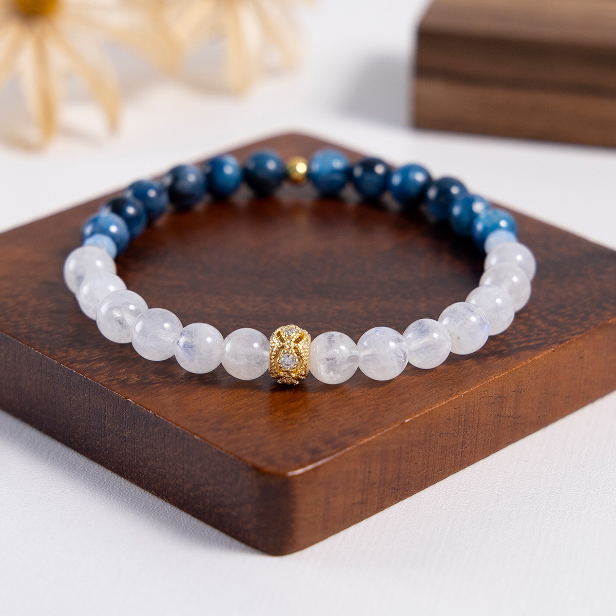 새로운 중국 스타일의 블루 크리스탈 화이트 달빛 구리 도금 진짜 금 상감 지르콘 팔찌 여성을위한 중국 스타일 팔찌