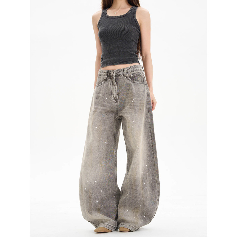 2025 유럽과 미국의 하이 스트리트 트렌디 아메리칸 레트로 핸섬 스플래시 커브드 칼 바지 남성 트렌디 브랜드 루즈 팬츠 커플 청바지스토어 가기