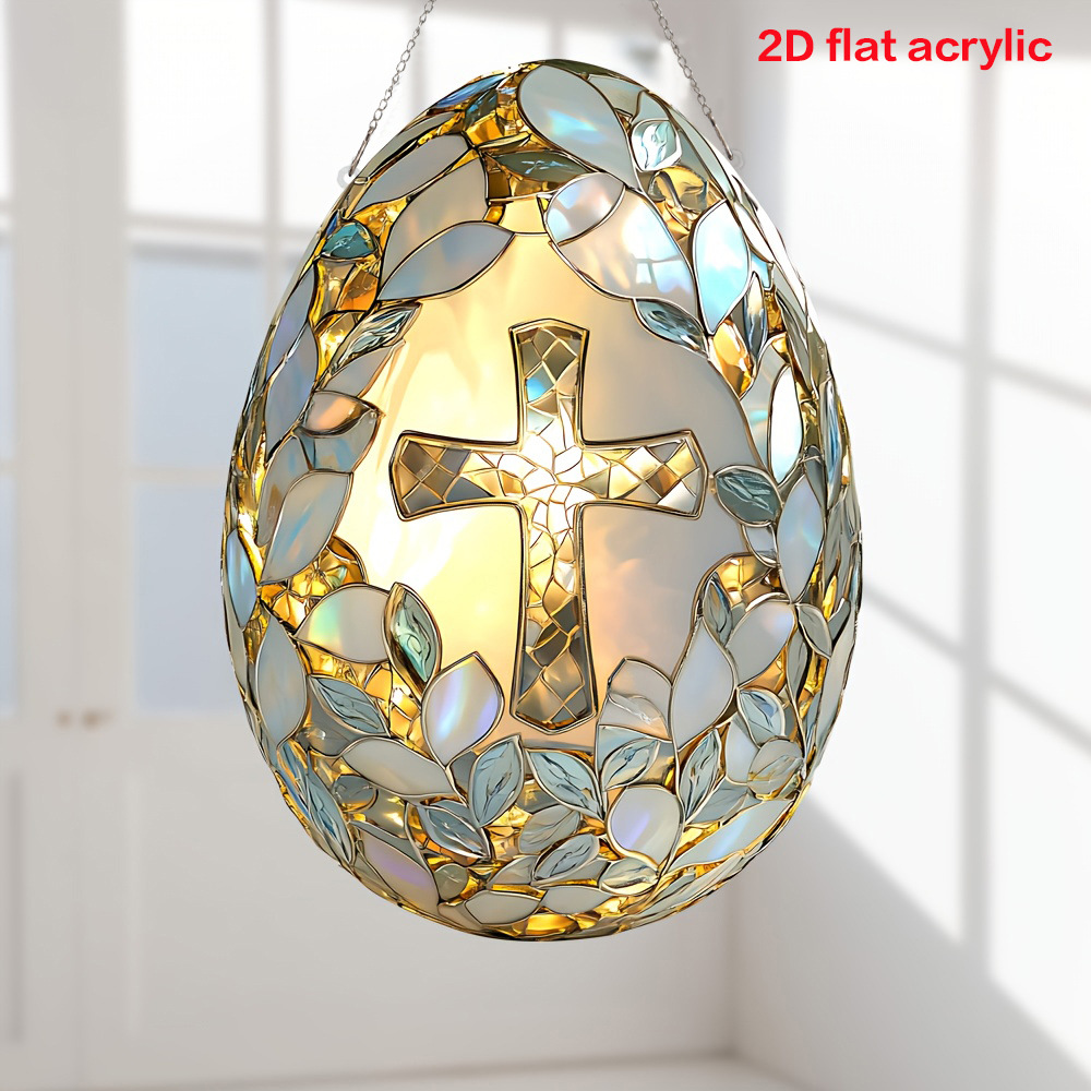 국경 패턴 달걀 모양의 거룩한 십자가 아크릴 태양 트래퍼 창 문 옷걸이 예술 축제 장식