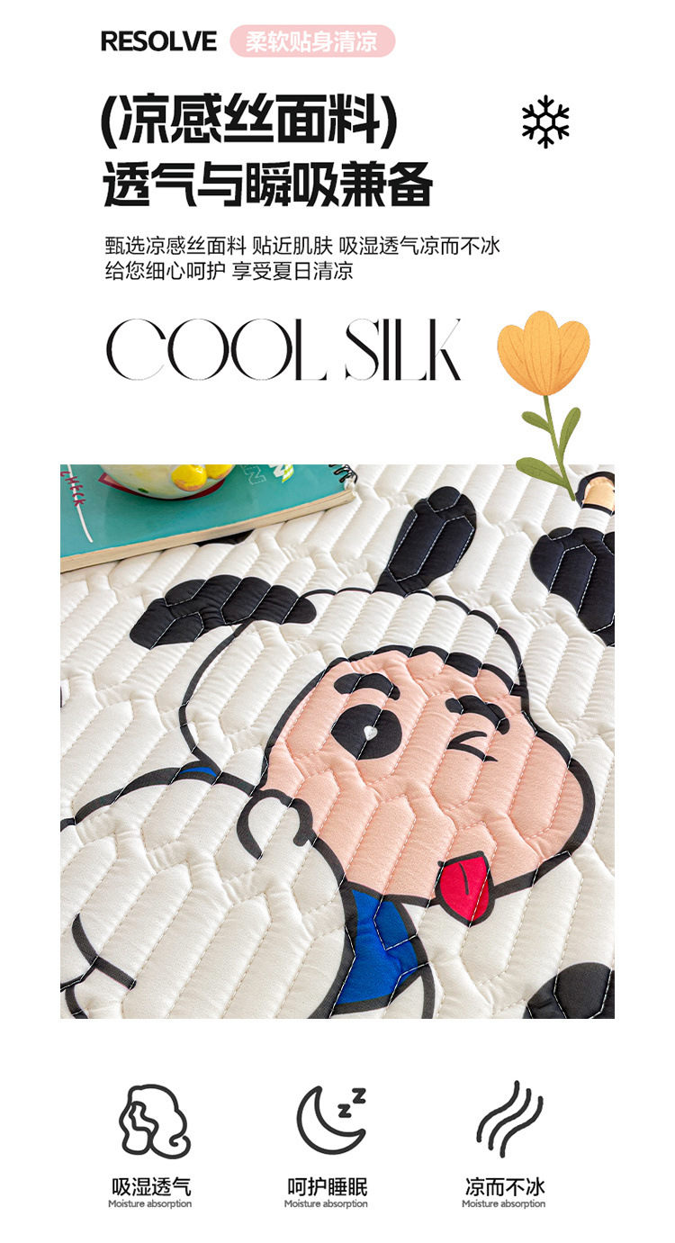 소 크레용 신짱 라텍스 매트 3피스 세트 귀여운 만화 얼음 실크 에어컨 매트 기숙사 싱글 세탁 가능