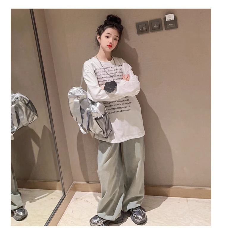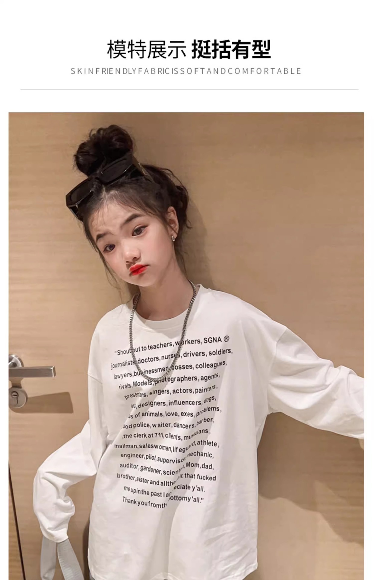 소녀의 봄과 가을 긴 소매베이스 셔츠 2025 새로운 어린이 캐주얼 한국 스타일 서양식 루즈 티셔츠 큰 어린이 탑