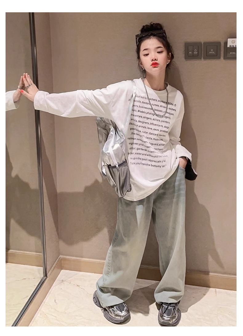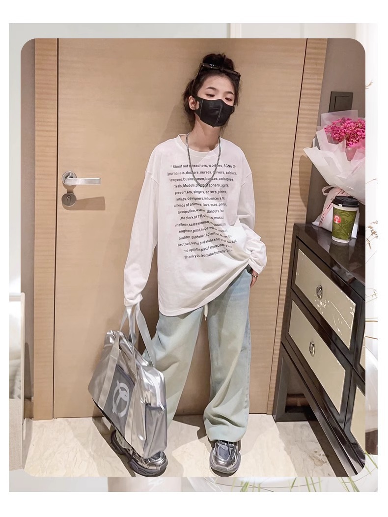 소녀의 봄과 가을 긴 소매베이스 셔츠 2025 새로운 어린이 캐주얼 한국 스타일 서양식 루즈 티셔츠 큰 어린이 탑스토어 가기