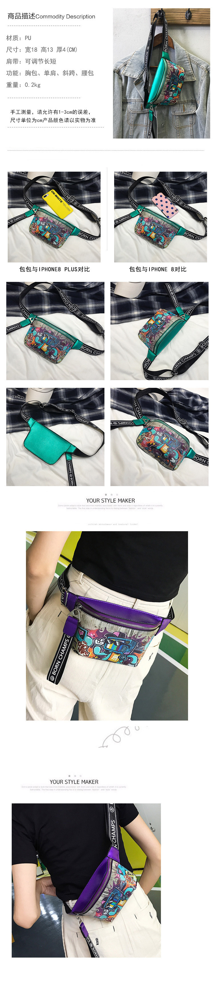 힙합 패션 그린 낙서 작은 포켓 독특한 새로운 인터넷 연예인 캐주얼 크로스 바디 가슴 가방 유행 디디 소녀 가방스토어 가기