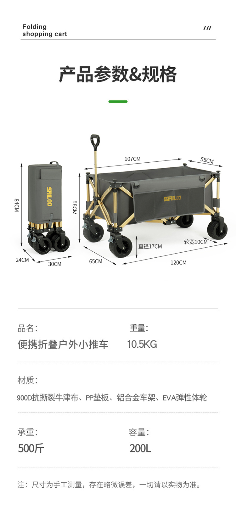 • 검정색 대형 알루미늄 합금 캠핑 카트