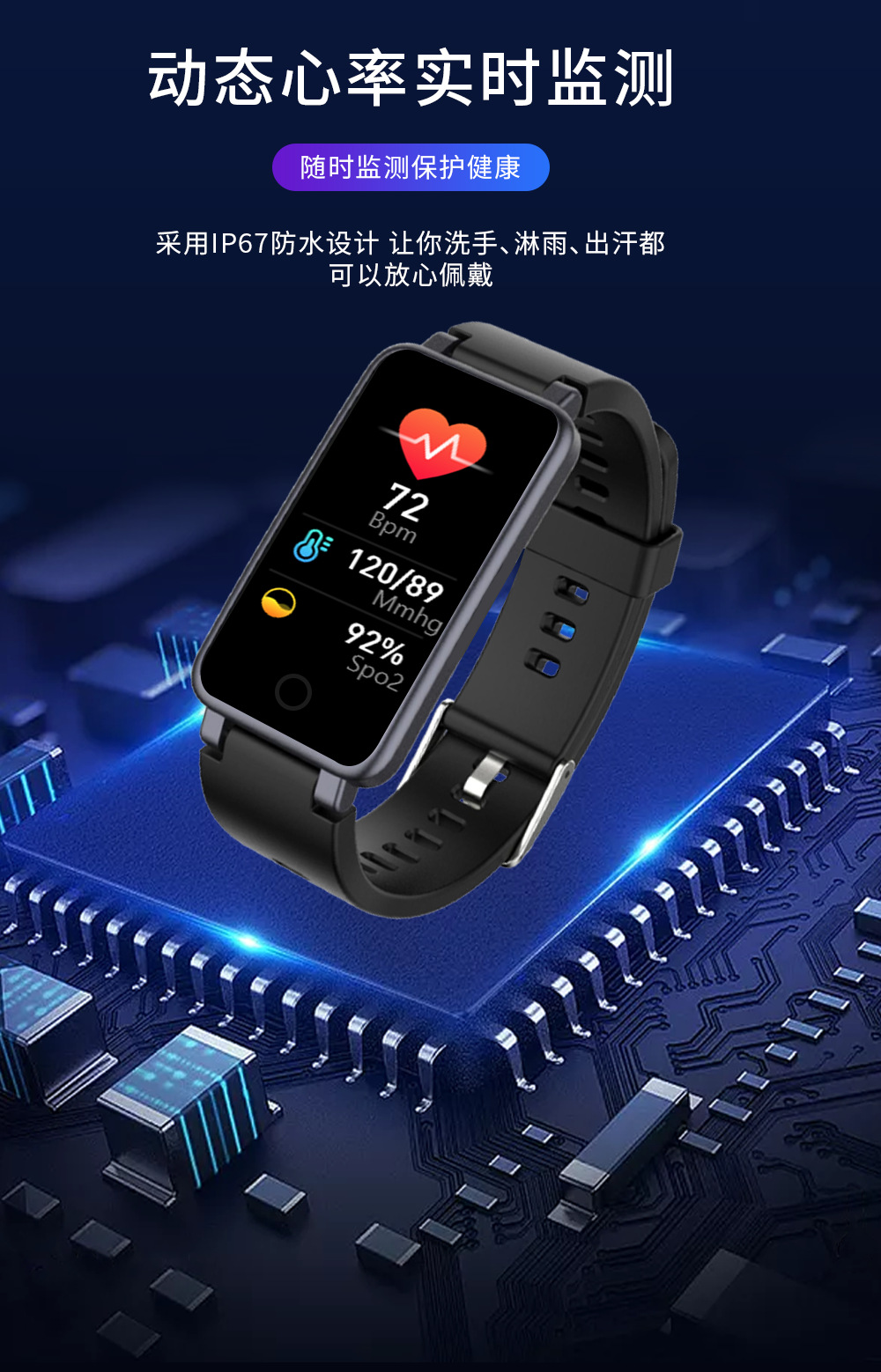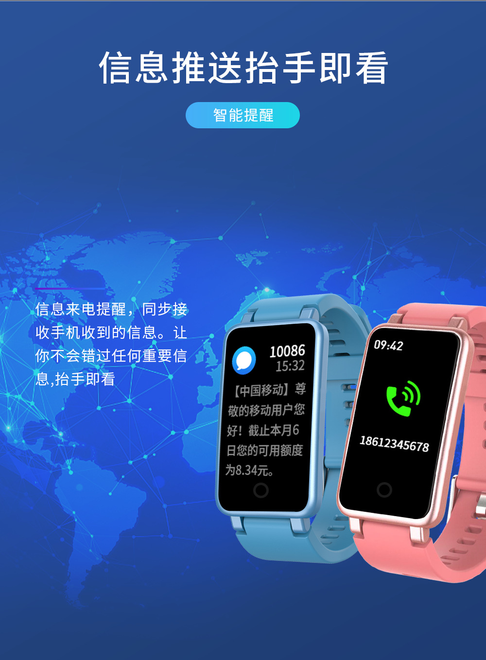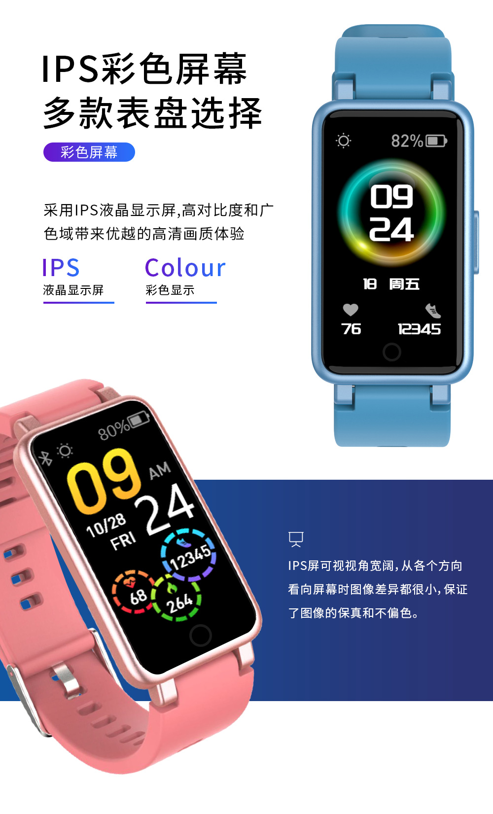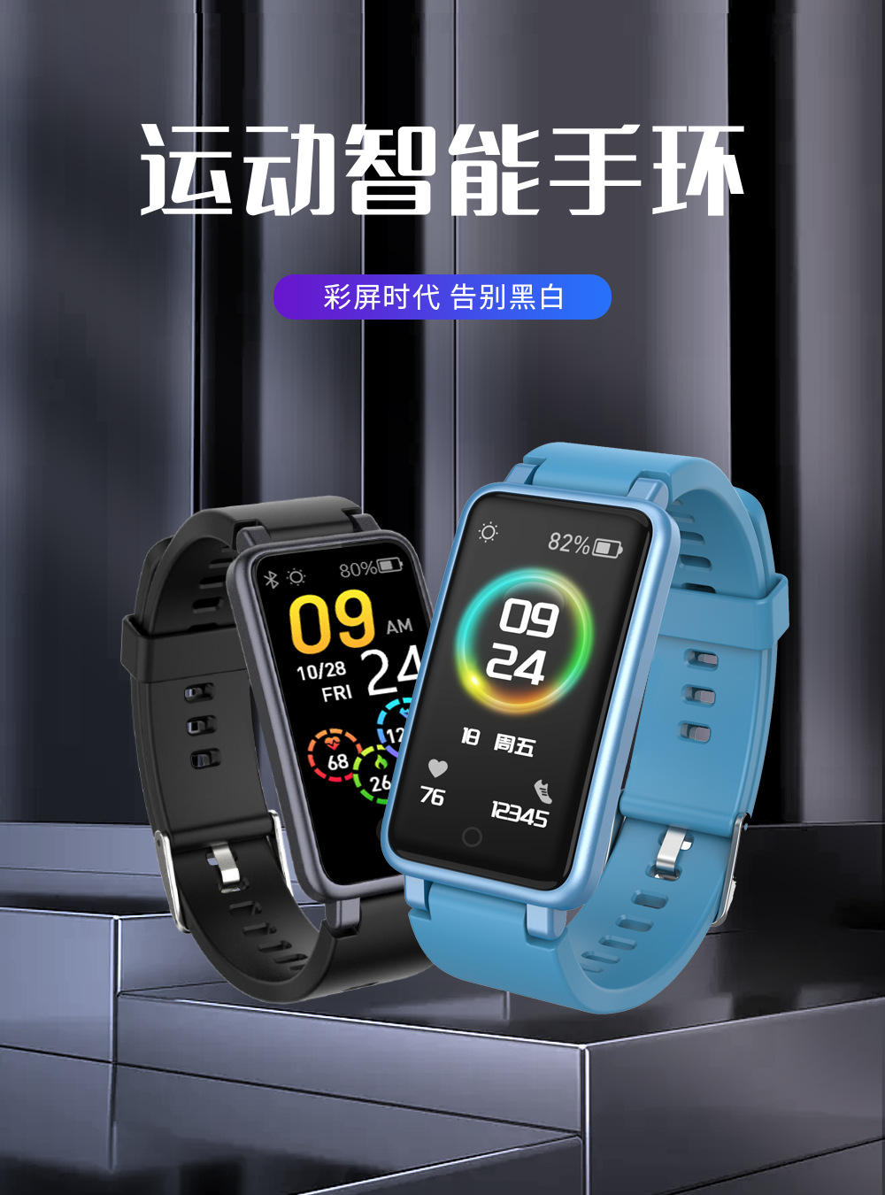 C2 HD 컬러 스크린 패션 스포츠 방수 스마트 팔찌 도매 심박수 모니터링 메시지 푸시 단계 팔찌스토어 가기