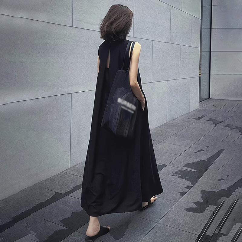 프랑스 헵번 스타일 민소매 원피스 블랙 원피스 여성 여름 새로운 백리스 롱 원피스스토어 가기