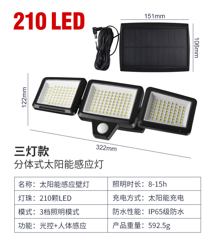 분할 태양광 실외 조명, 정원 조명, 가정용 실내 분리 가로등, 인체 감지