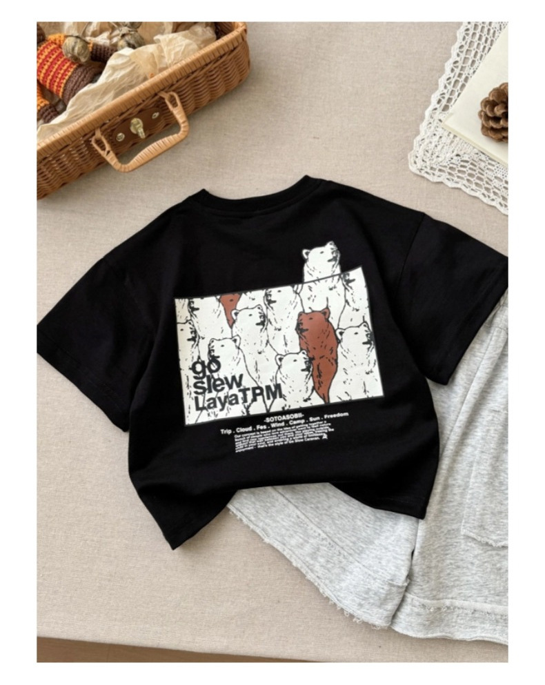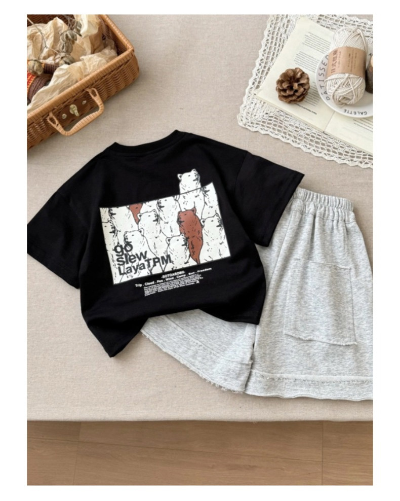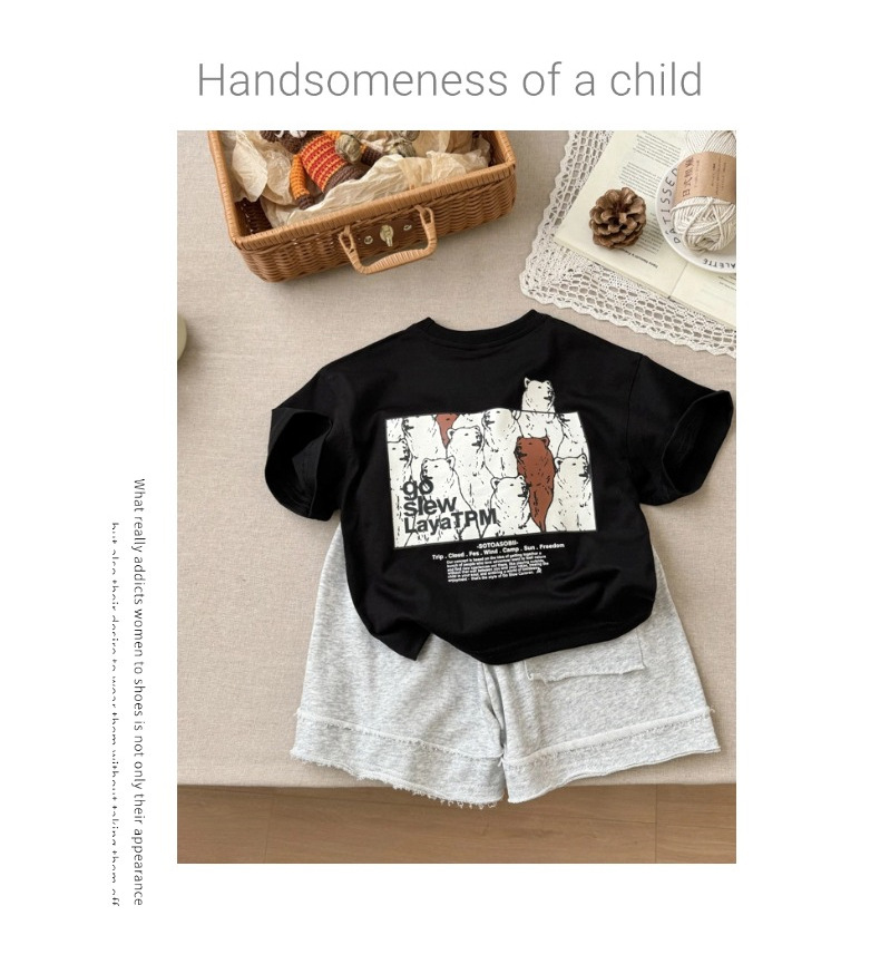 어린이 세트 인쇄 반팔 2025 여름 새 만화 티셔츠 캐주얼 남성 아기 반바지 한국식 투피스 세트