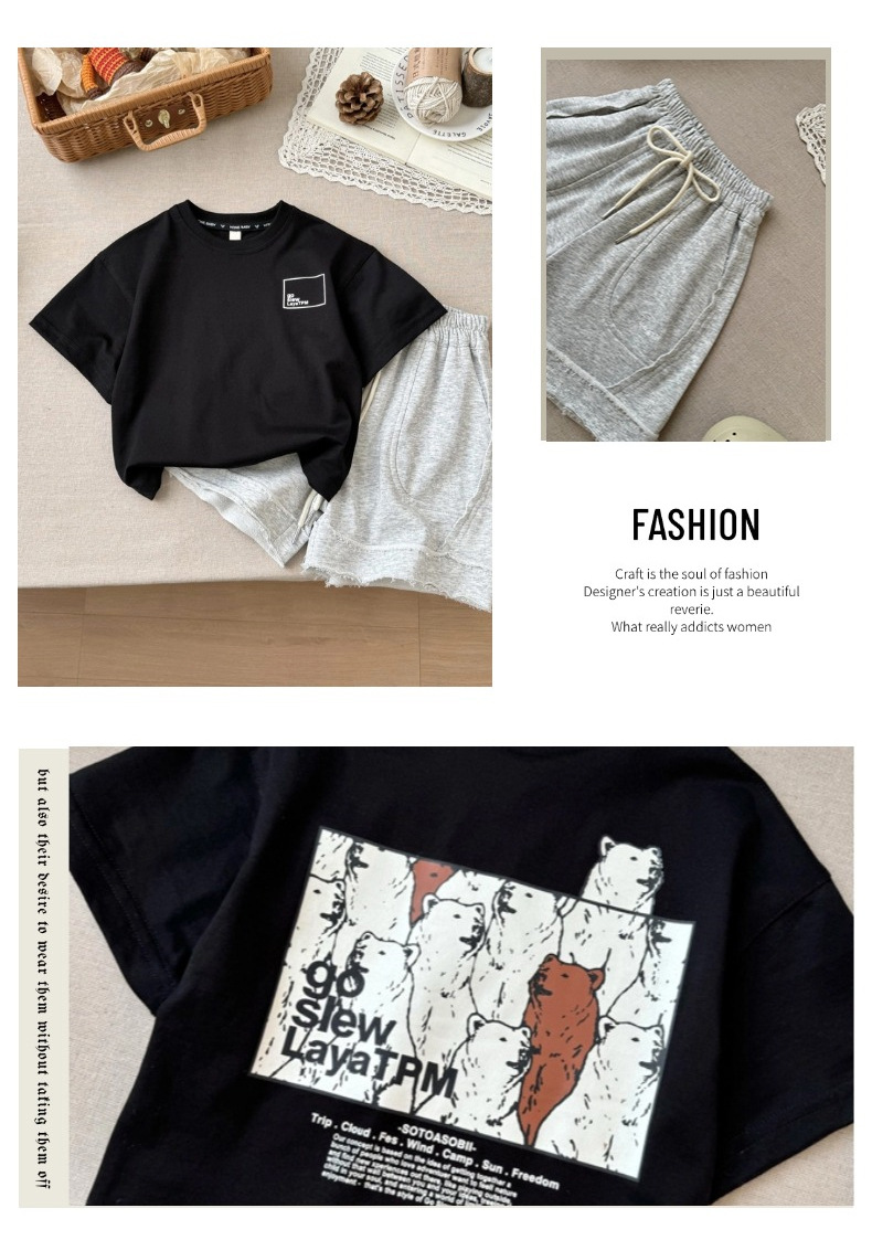 어린이 세트 인쇄 반팔 2025 여름 새 만화 티셔츠 캐주얼 남성 아기 반바지 한국식 투피스 세트스토어 가기