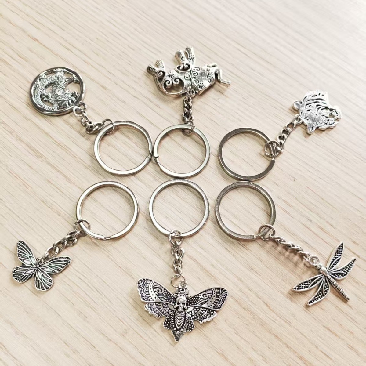 뜨거운 판매 빈티지 나비 잠자리 호랑이 동물 컬렉션 합금 키 체인 자동차 배낭 펜던트스토어 가기