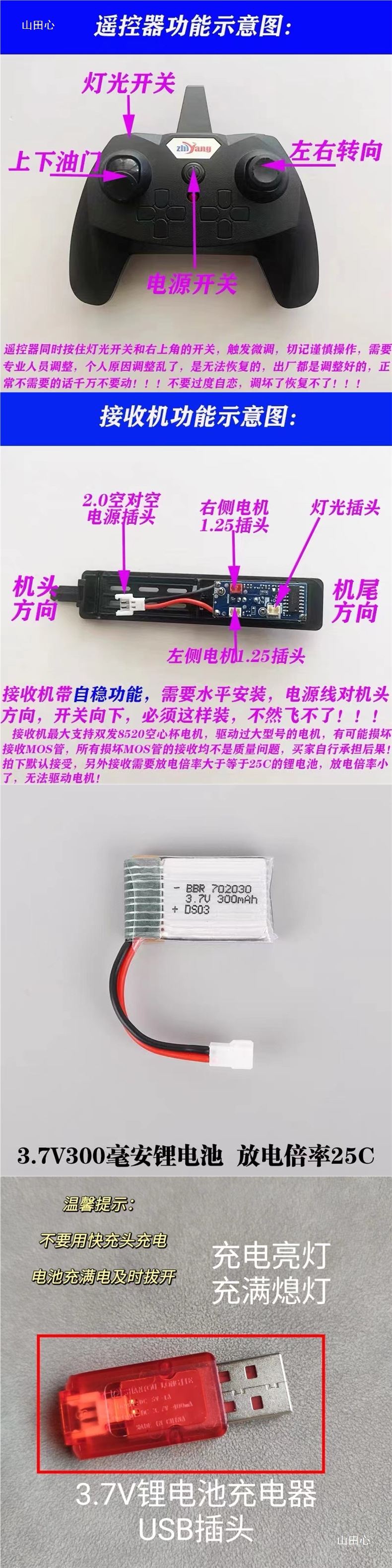 ZY530 차동 항공기 모델 손으로 던지는 기계 수정 된 2 채널 항공기 원격 제어 수신기 DIY 생산 예비 부품