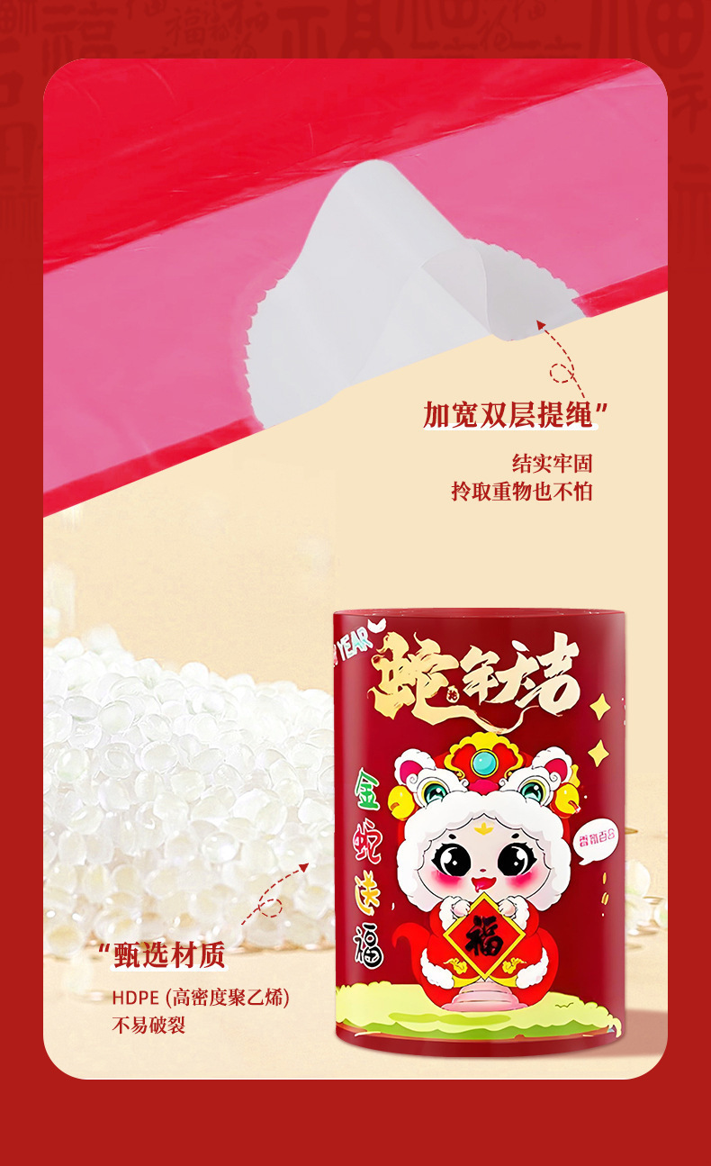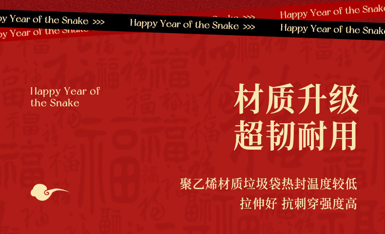 뱀의 해 쓰레기 봉투 졸라매는 끈 가정용 두꺼운 주방 비닐 봉투 학생 기숙사 쓰레기 봉투 졸라매는 끈으로 편리 MU스토어 가기
