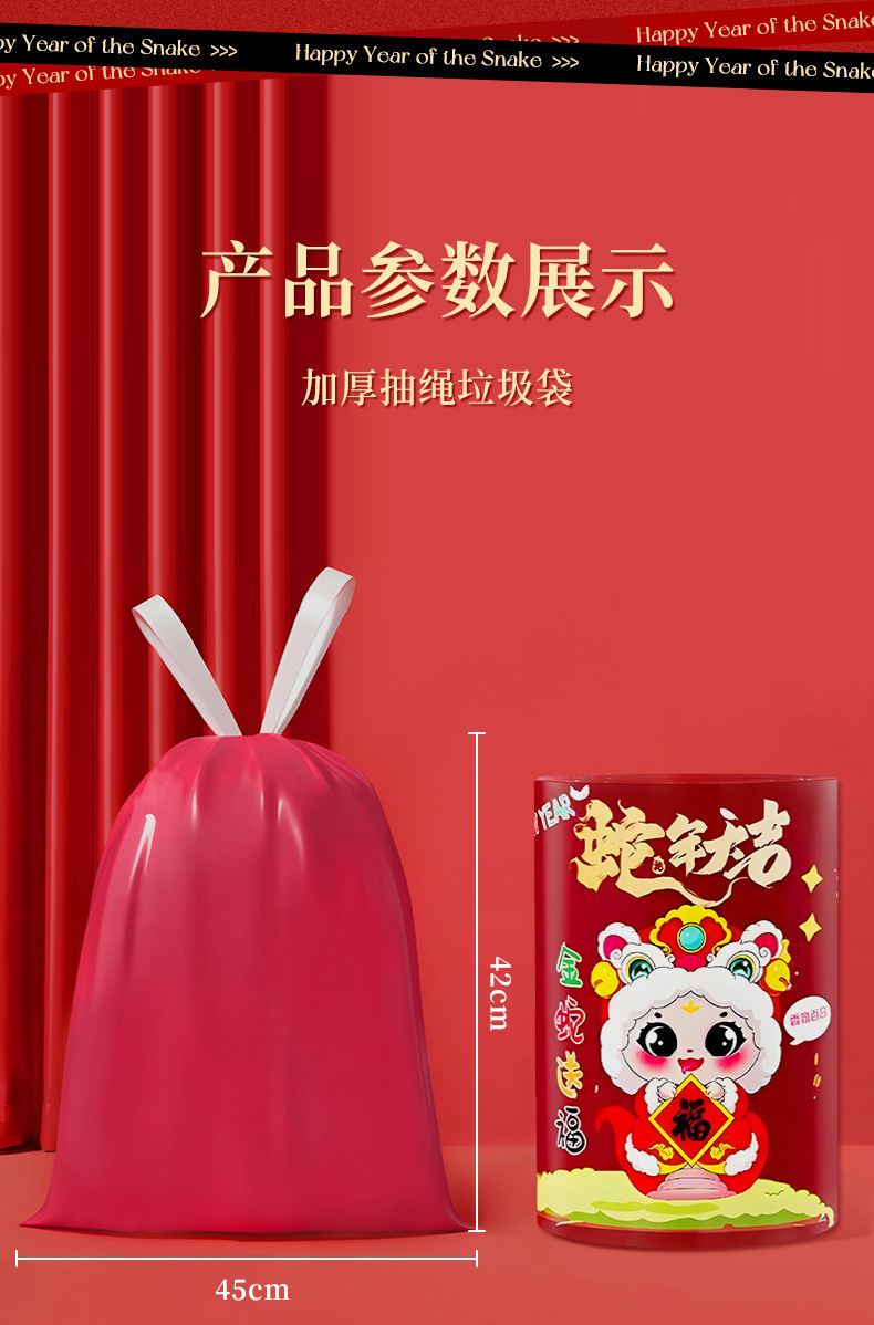 뱀의 해 쓰레기 봉투 졸라매는 끈 가정용 두꺼운 주방 비닐 봉투 학생 기숙사 쓰레기 봉투 졸라매는 끈으로 편리 MU