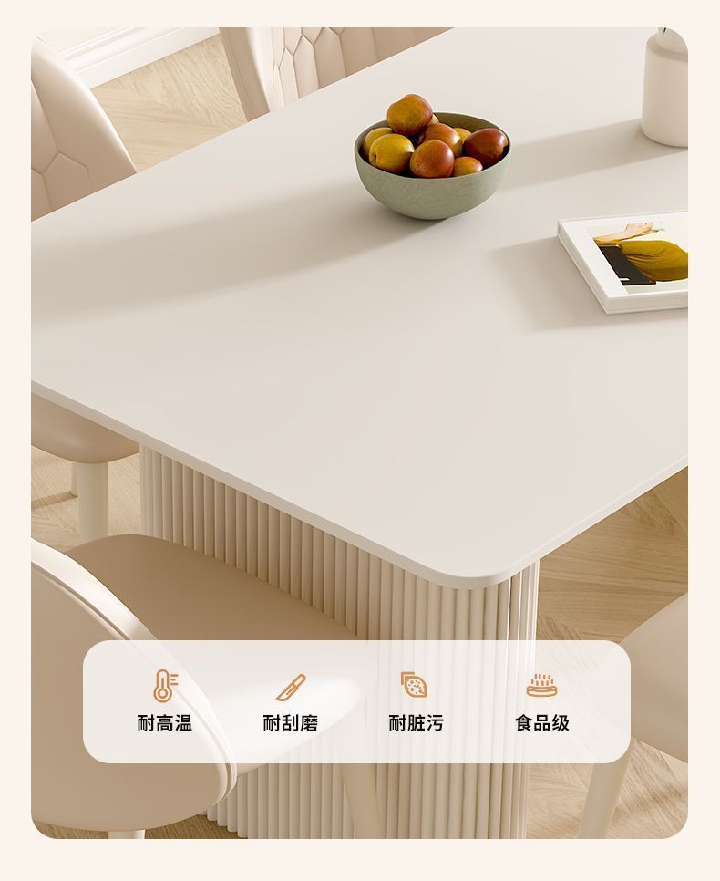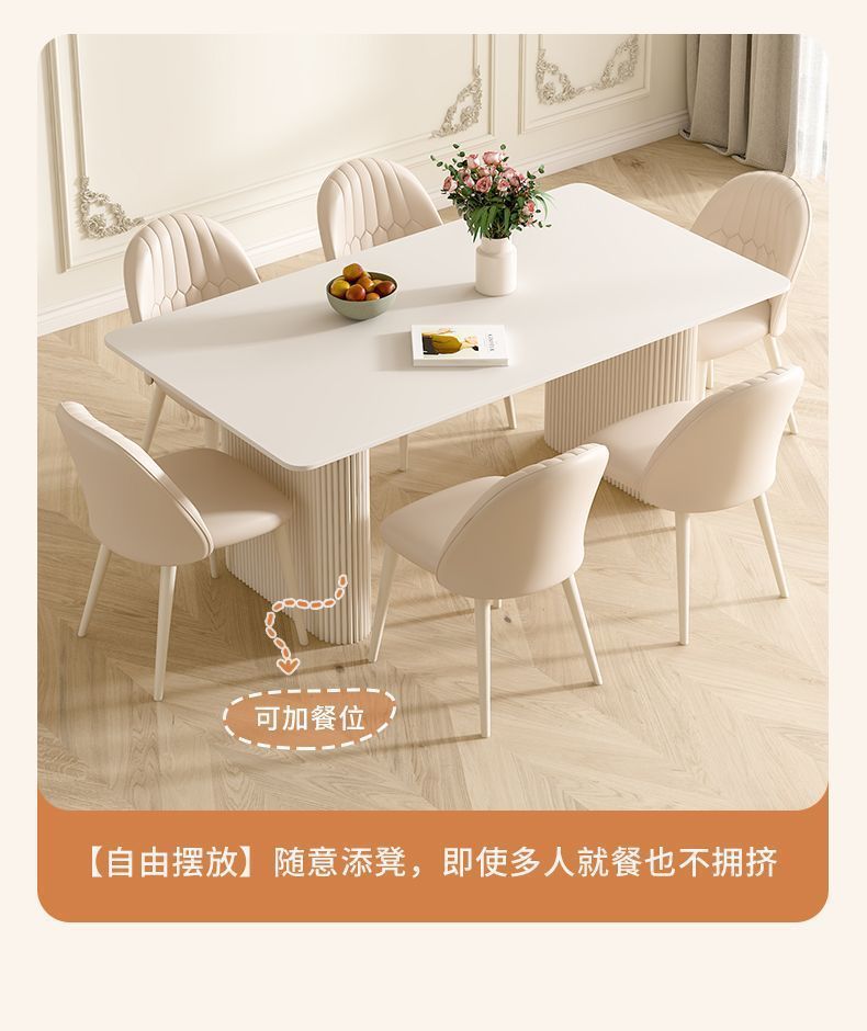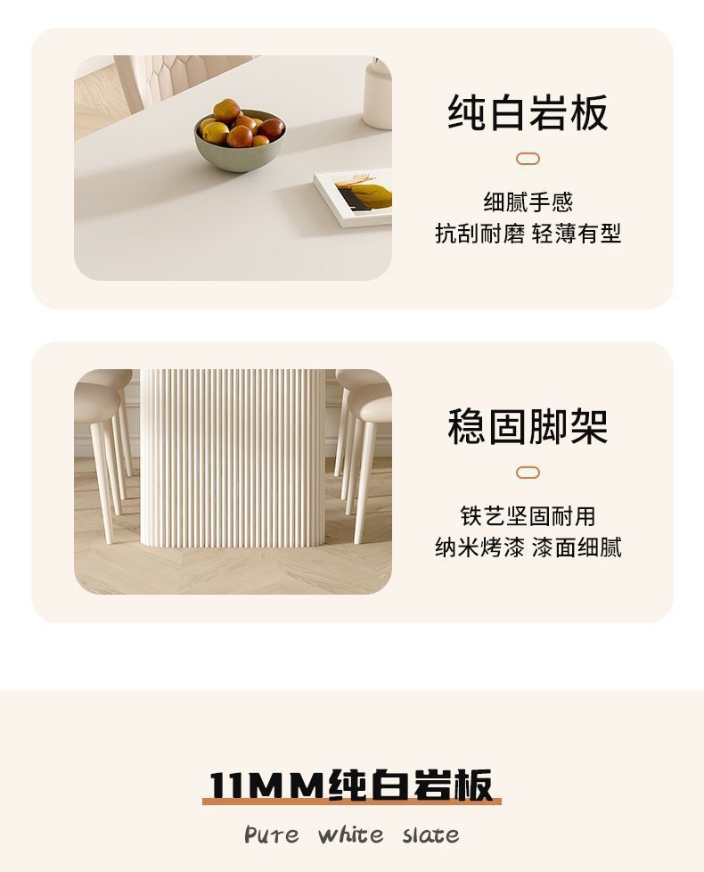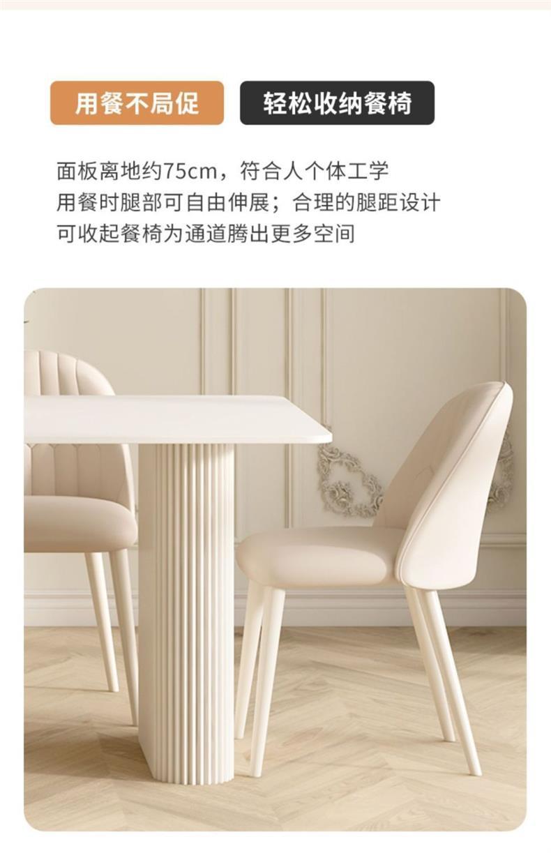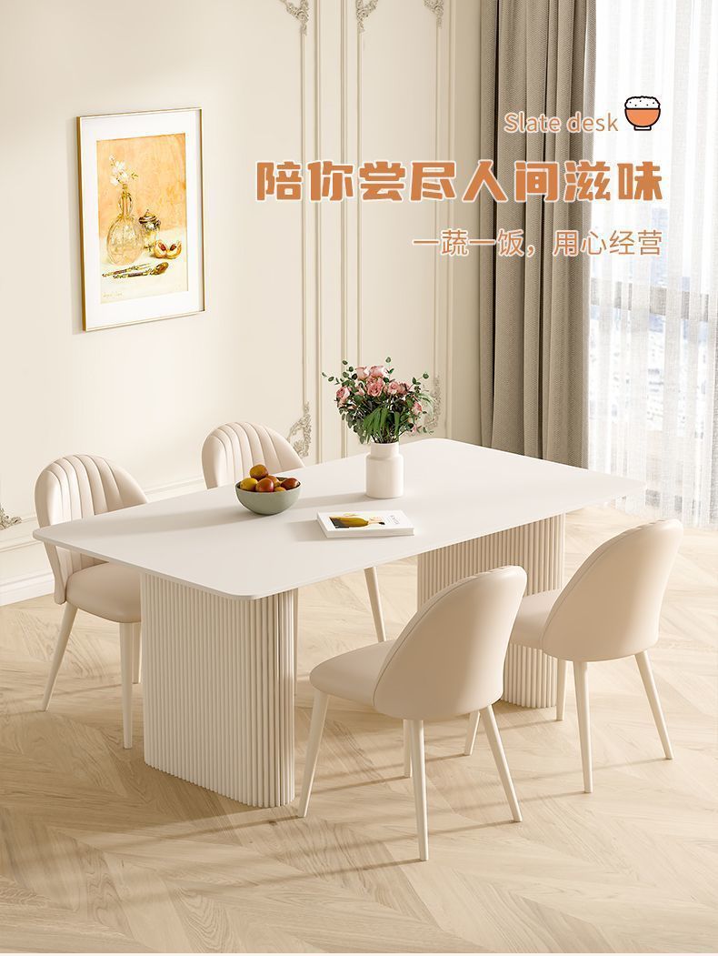가정용 소형 아파트를 위한 크림 스타일의 순백색 슬레이트 식탁 현대적인 단순하고 가벼운 럭셔리 인터넷 연예인 직사각형 식탁과 의자 조합스토어 가기