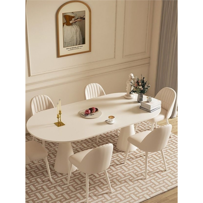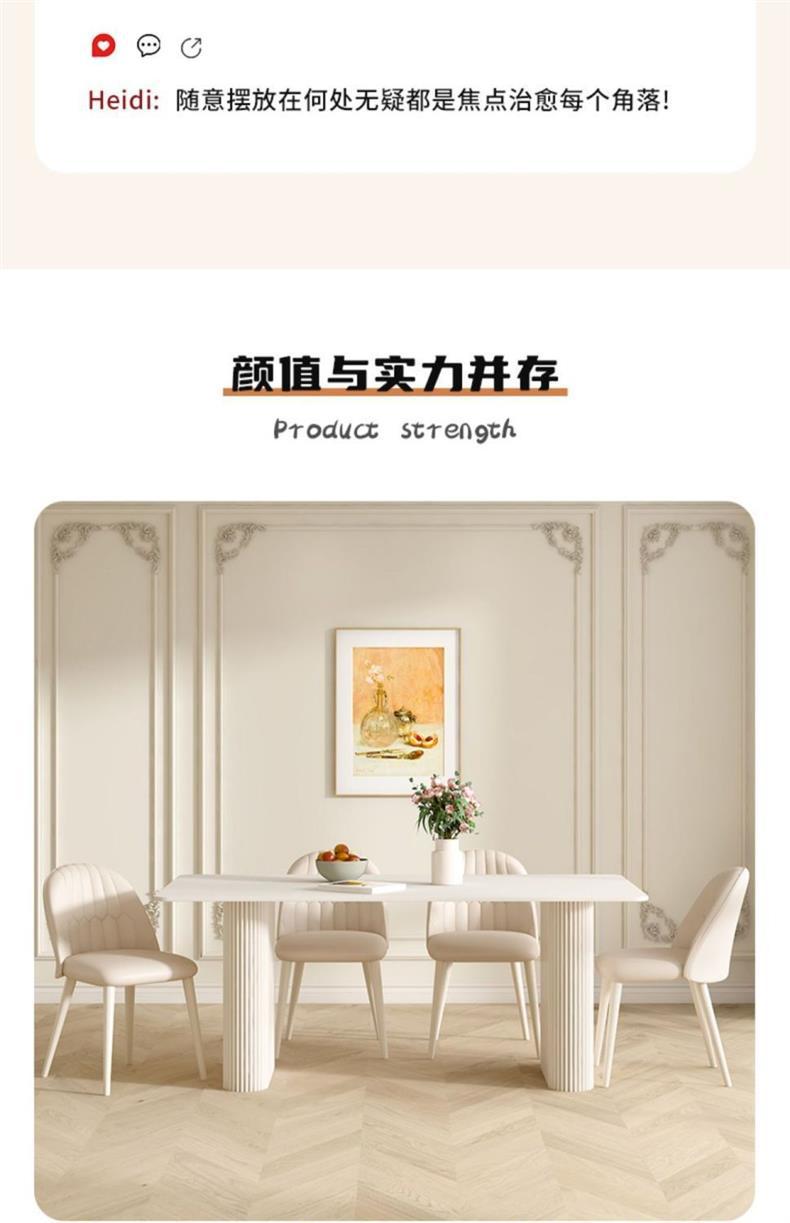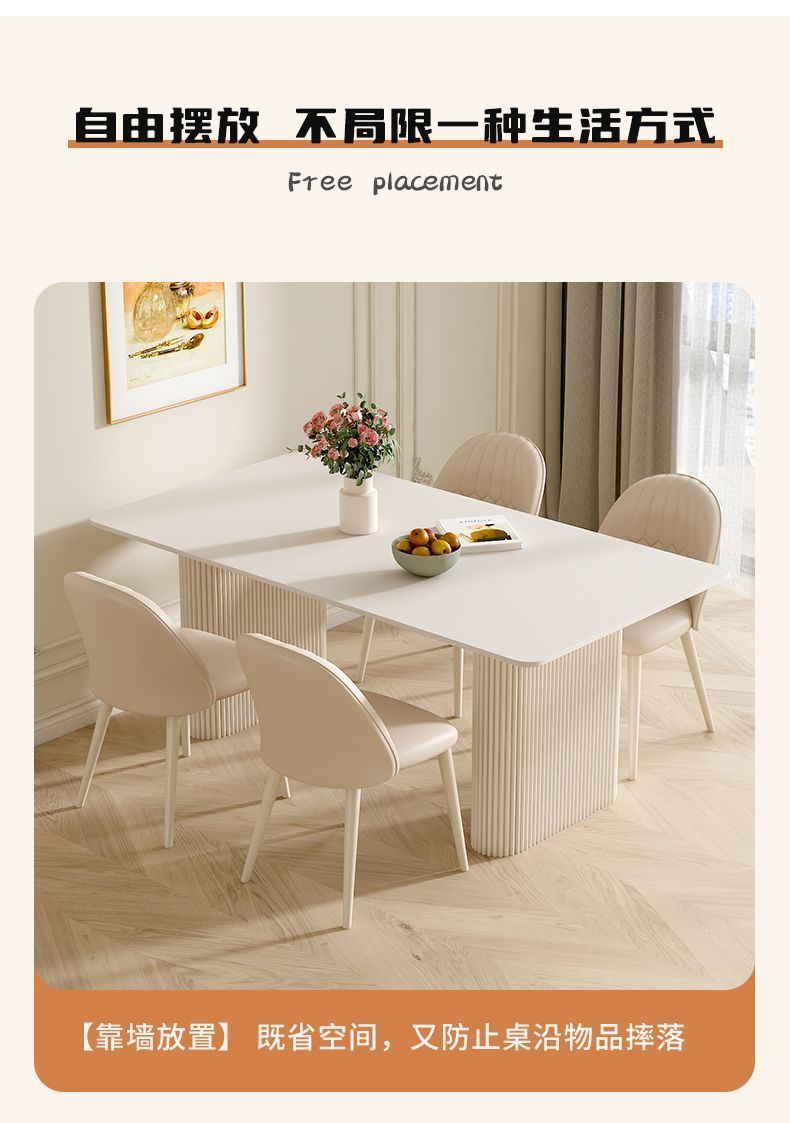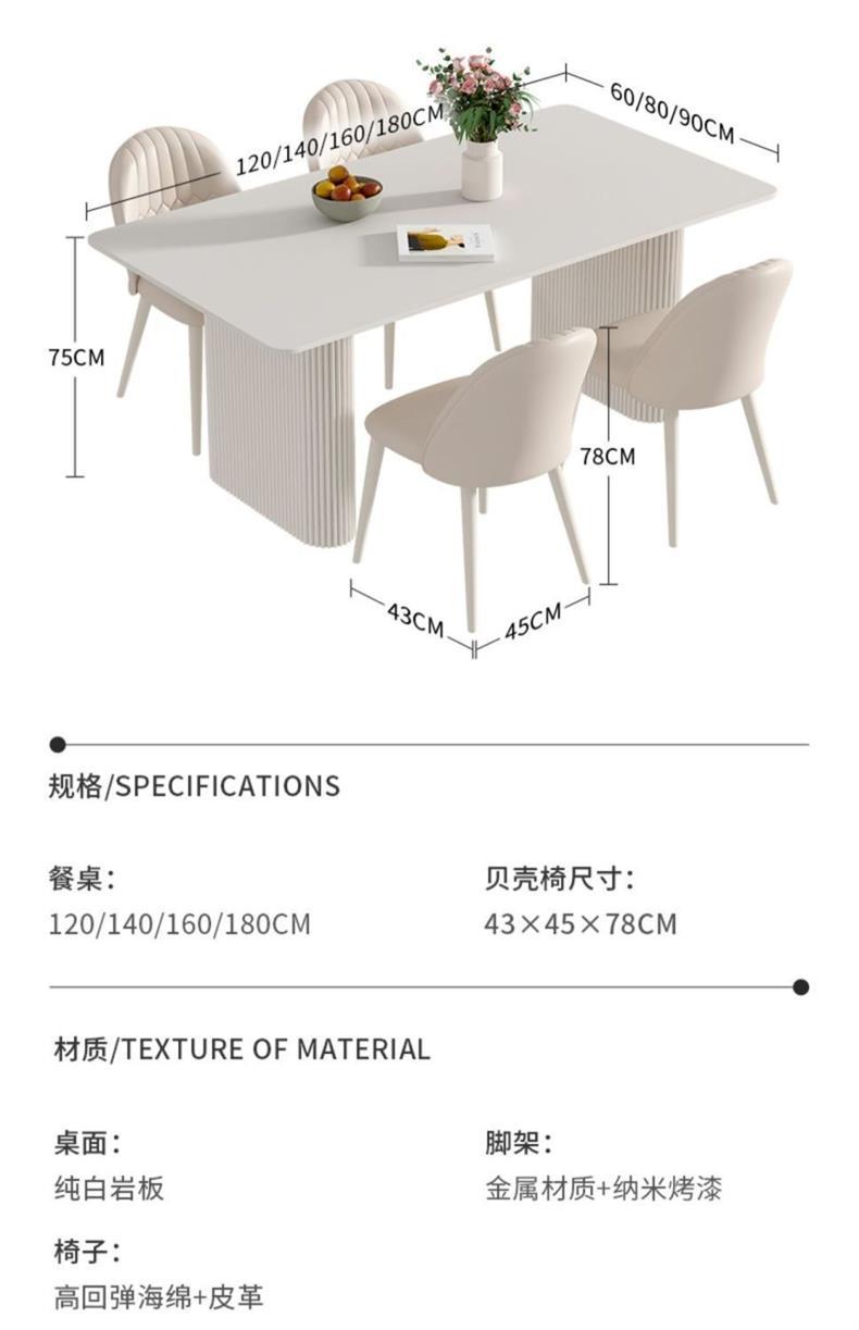가정용 소형 아파트를 위한 크림 스타일의 순백색 슬레이트 식탁 현대적인 단순하고 가벼운 럭셔리 인터넷 연예인 직사각형 식탁과 의자 조합스토어 가기