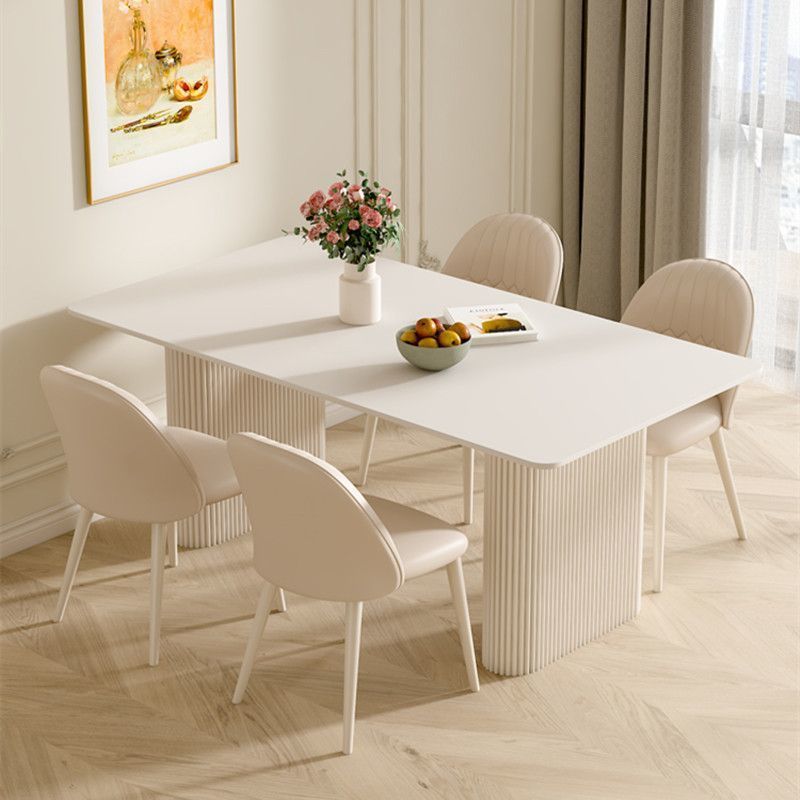 가정용 소형 아파트를 위한 크림 스타일의 순백색 슬레이트 식탁 현대적인 단순하고 가벼운 럭셔리 인터넷 연예인 직사각형 식탁과 의자 조합