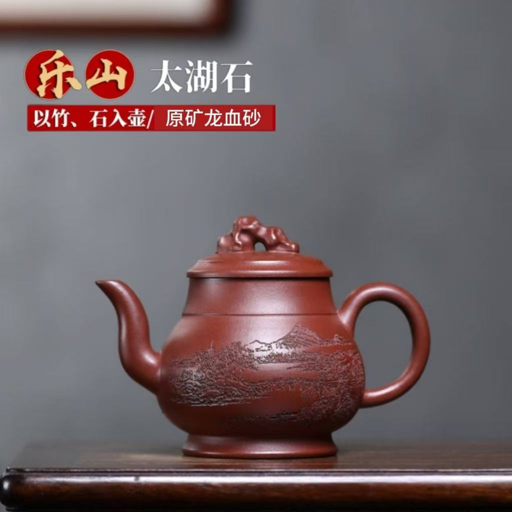 Yixing Authentic 대용량 Zisha Pot Raw Ore Dragon Blood Sand 새겨진 Taihu Stone Palace Lantern 가정용 고급 차 세트 선물스토어 가기