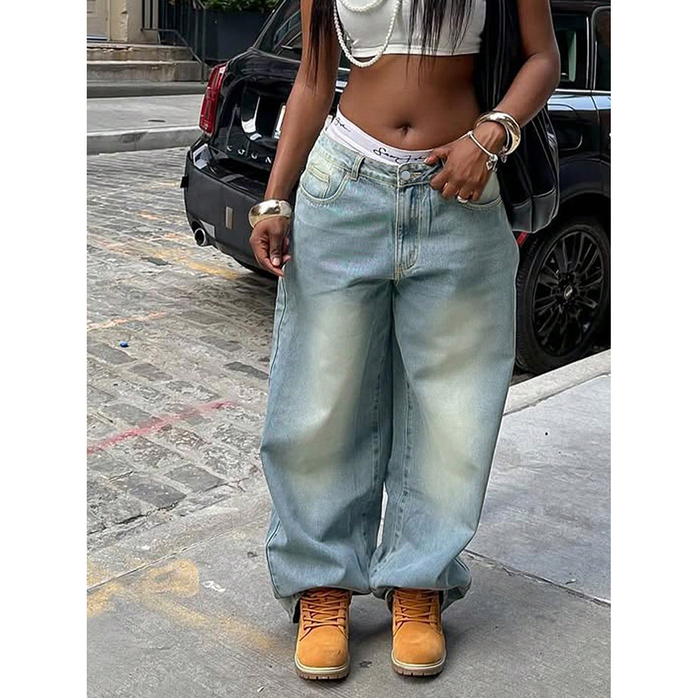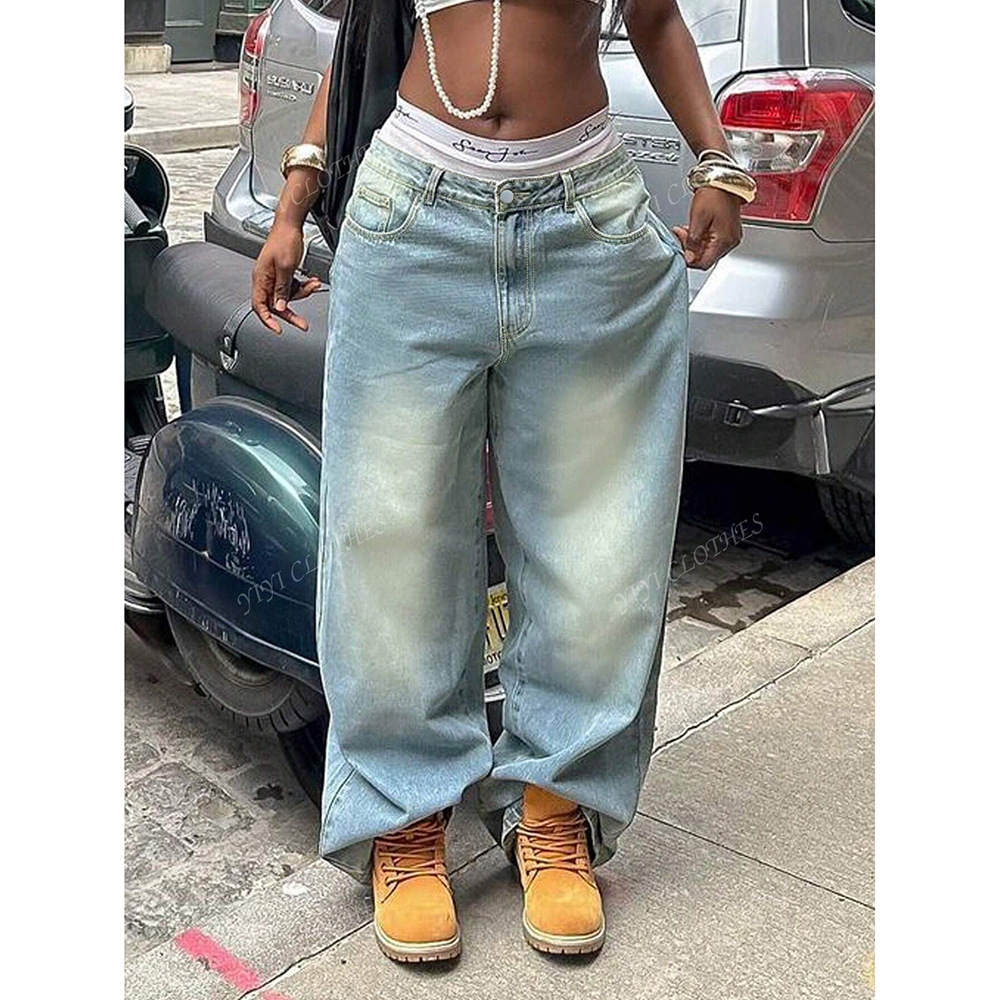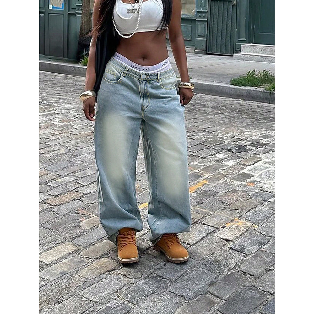 2025 봄과 가을 새로운 유럽과 미국의 느슨한 유행 청바지 여성 패션 디자인 틈새 다목적 긴 바지