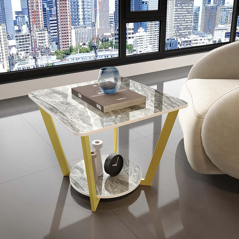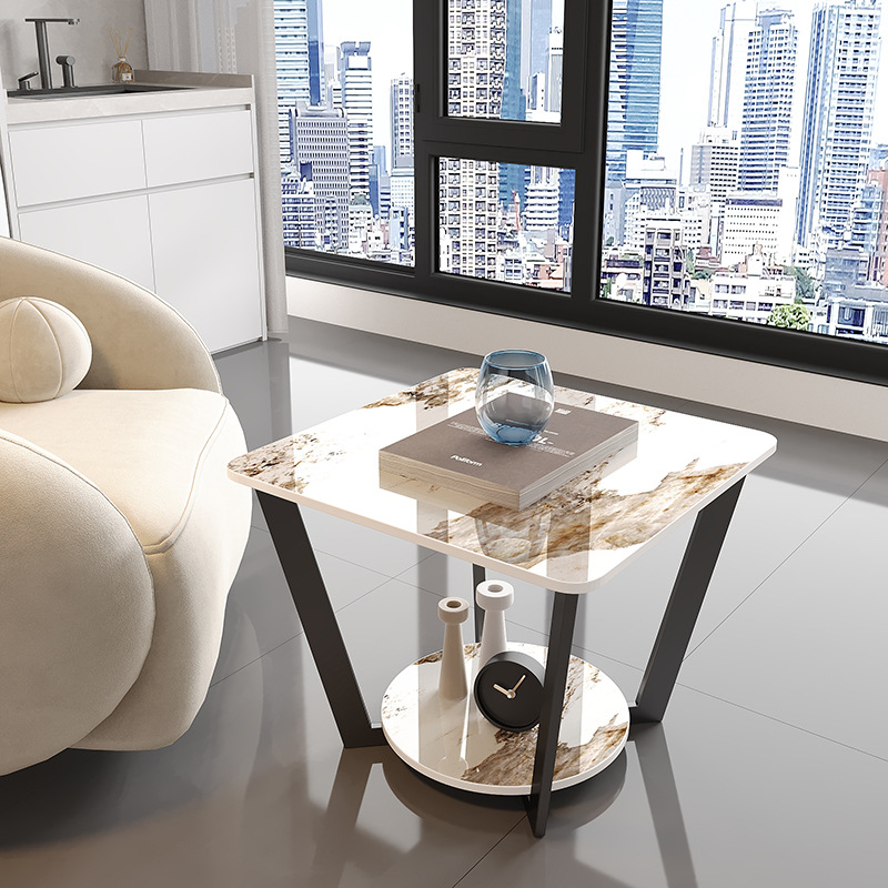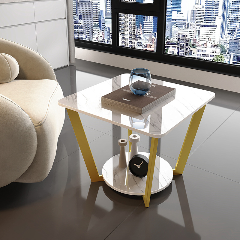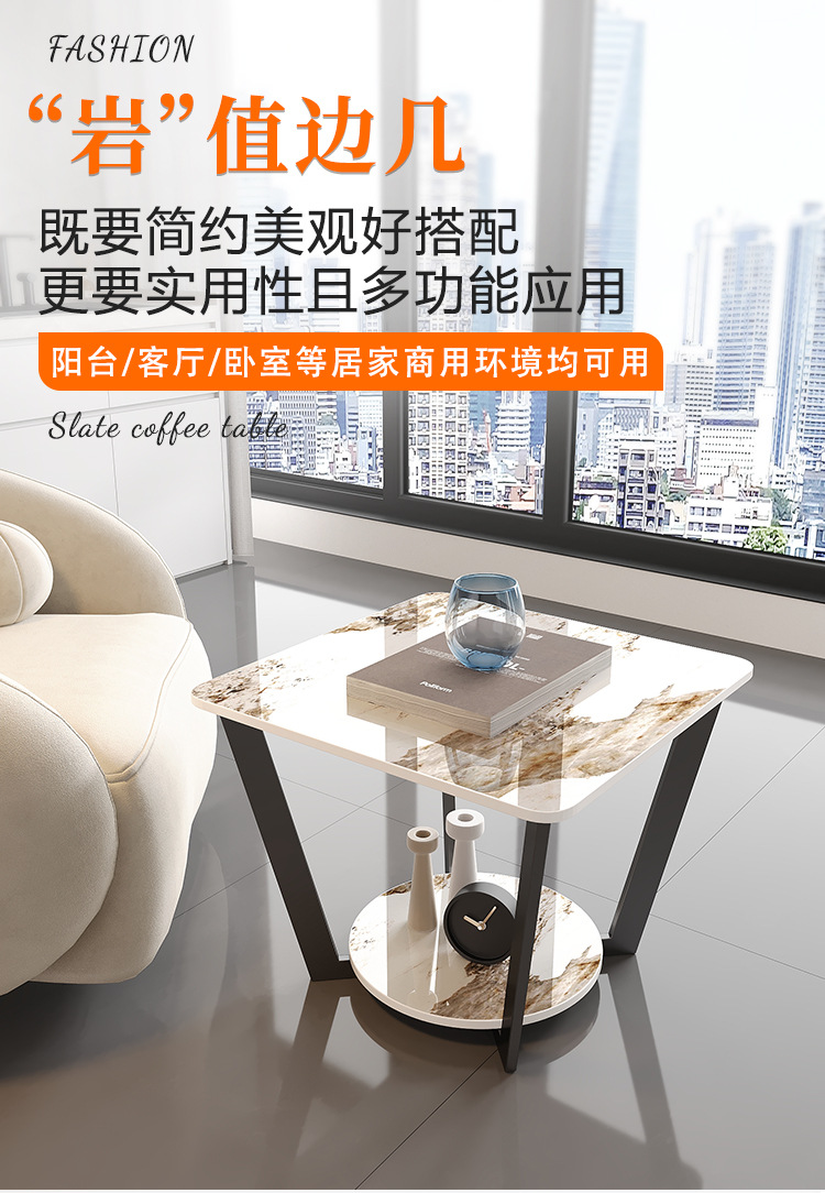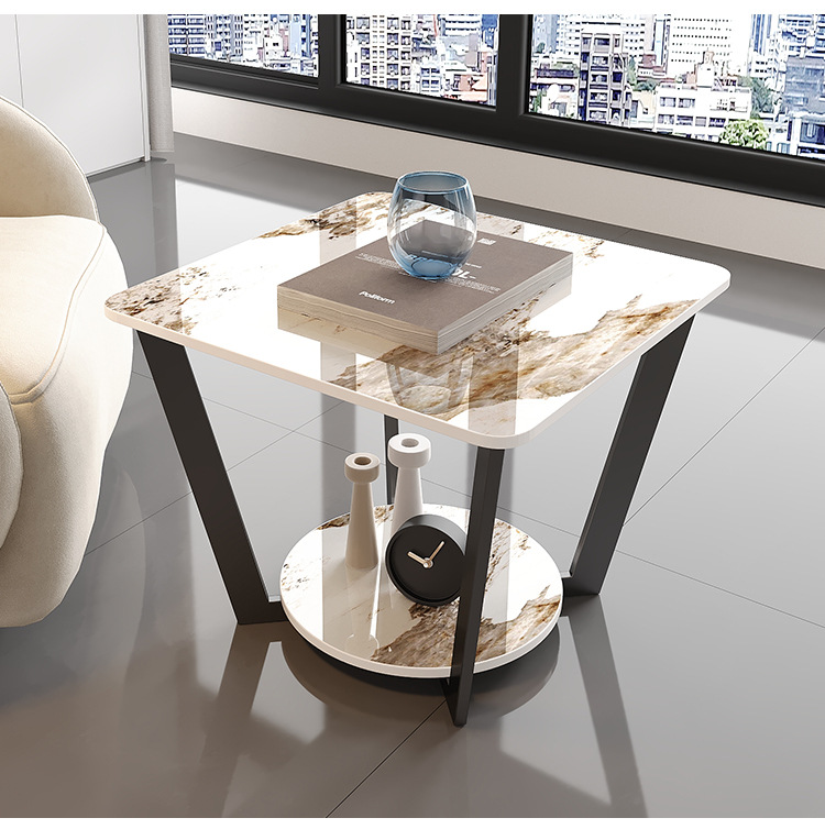 가벼운 고급 사이드 테이블, 거실 소파, 석판 작은 커피 테이블, 심플 모던 침대 옆 사각 코너 테이블, 사이드 테이블, 발코니 테이블