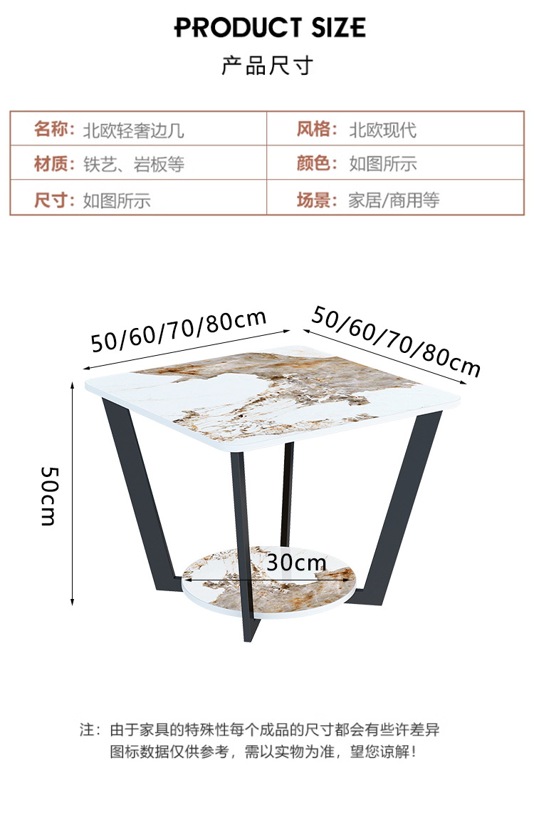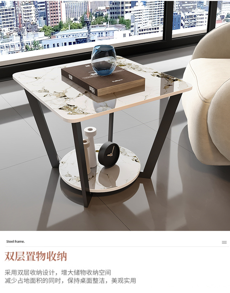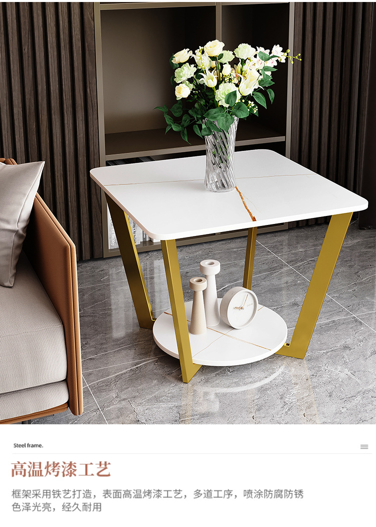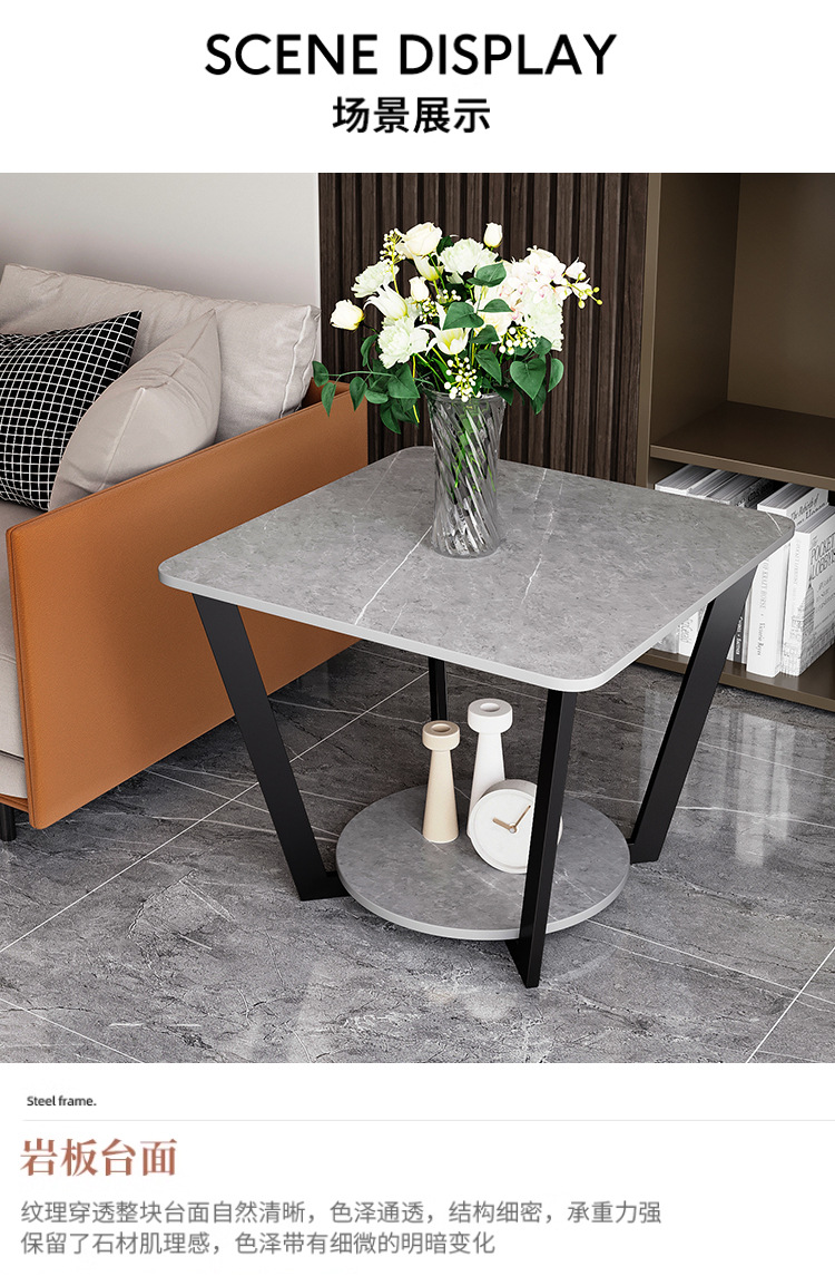 가벼운 고급 사이드 테이블, 거실 소파, 석판 작은 커피 테이블, 심플 모던 침대 옆 사각 코너 테이블, 사이드 테이블, 발코니 테이블스토어 가기