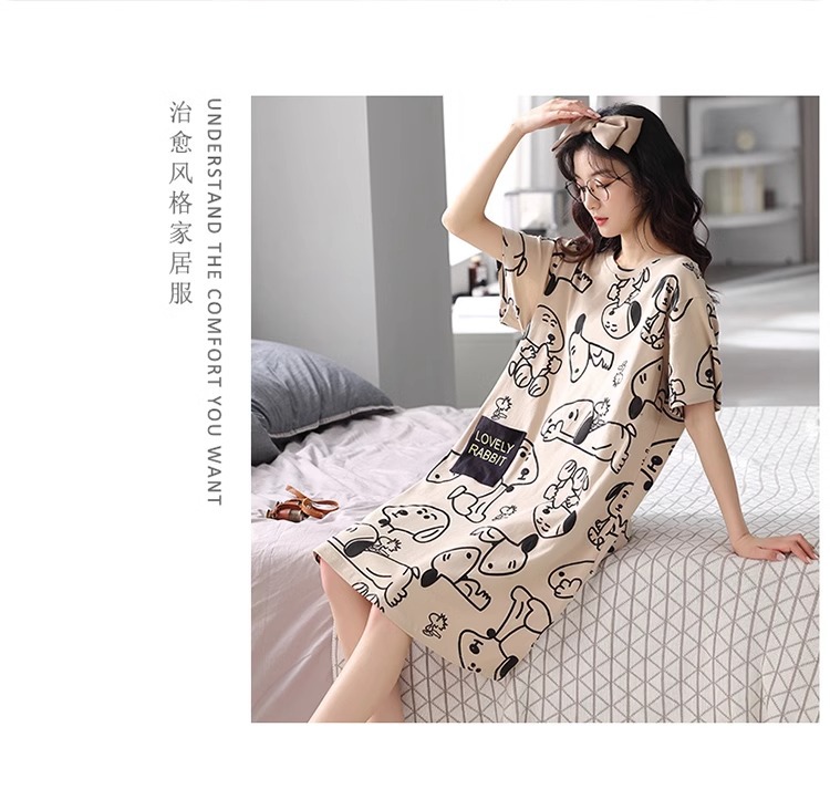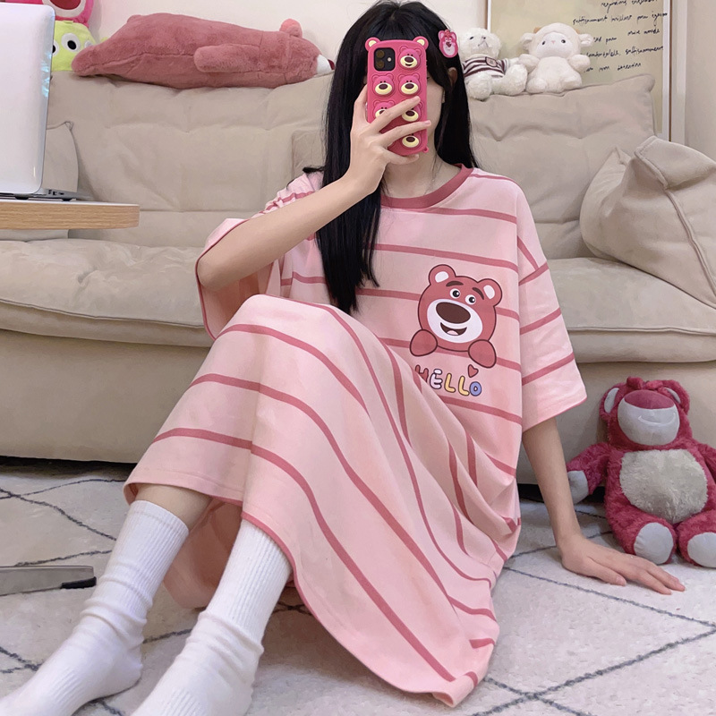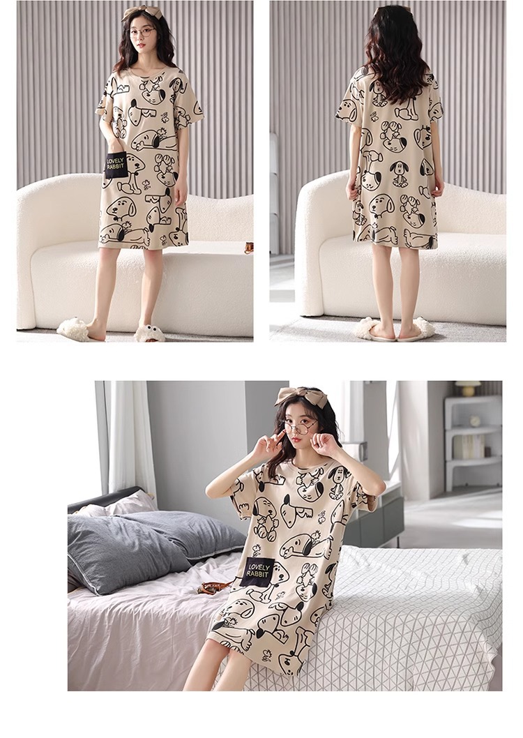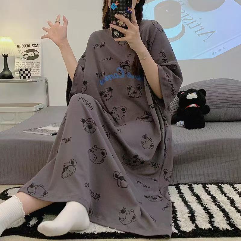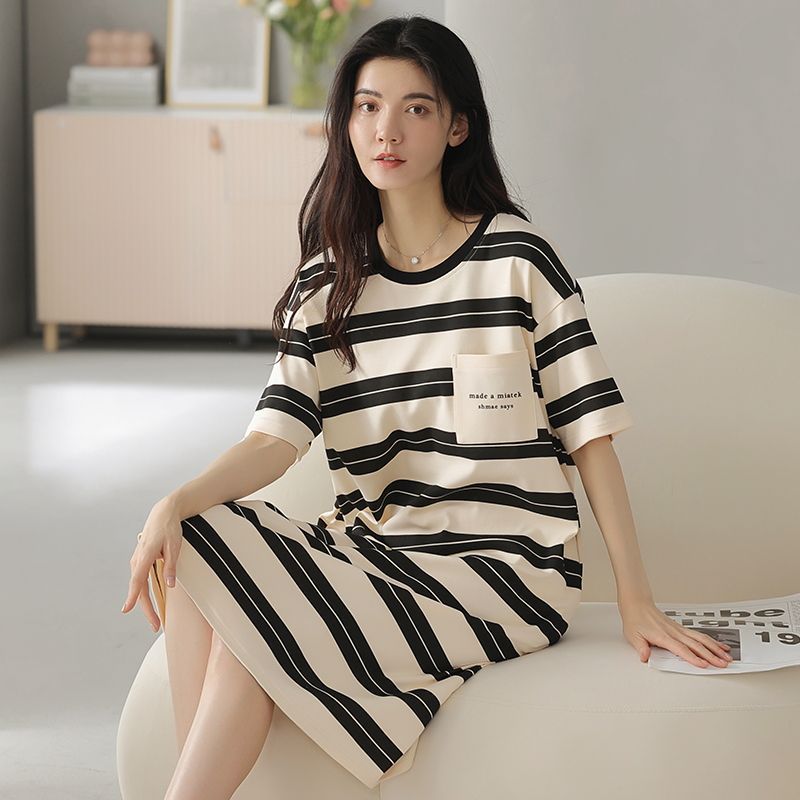 여성 여름 느슨한 소매 여름 플러스 사이즈 반팔 얇은 달콤한 중간 길이 잠옷 임산부는 홈 옷을 입을 수 있습니다스토어 가기