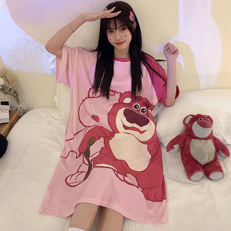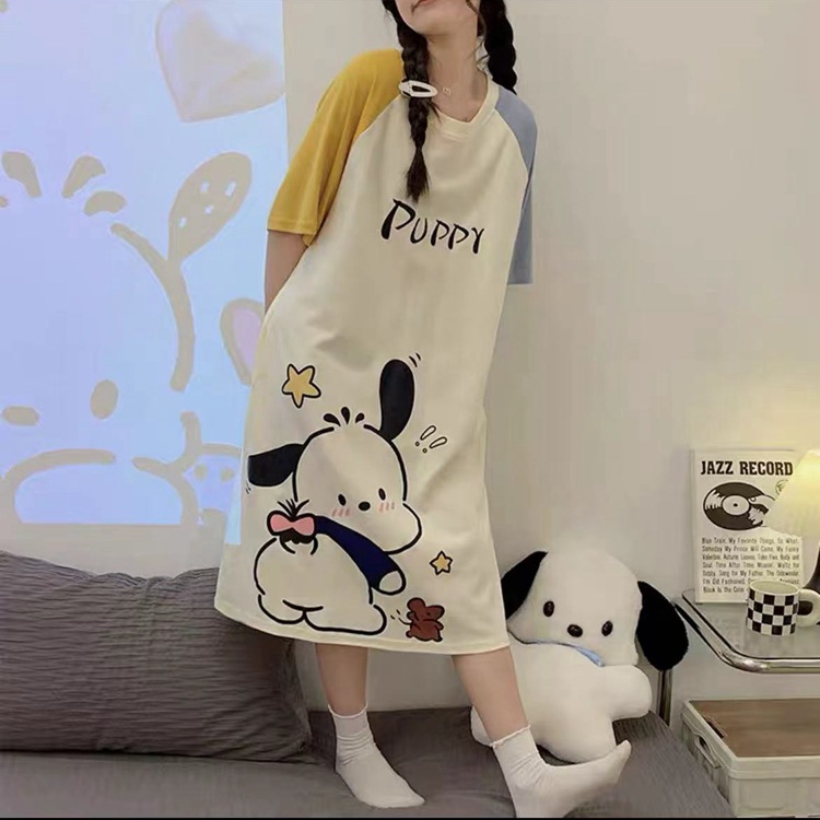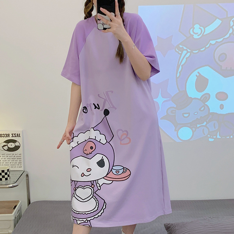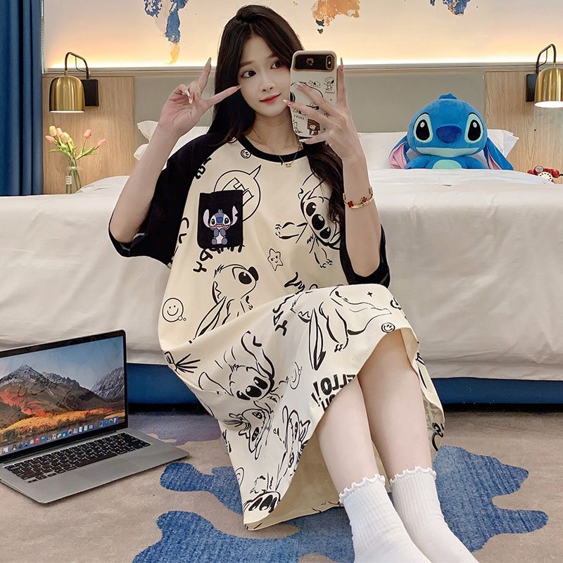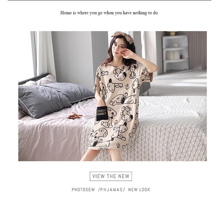 여성 여름 느슨한 소매 여름 플러스 사이즈 반팔 얇은 달콤한 중간 길이 잠옷 임산부는 홈 옷을 입을 수 있습니다스토어 가기