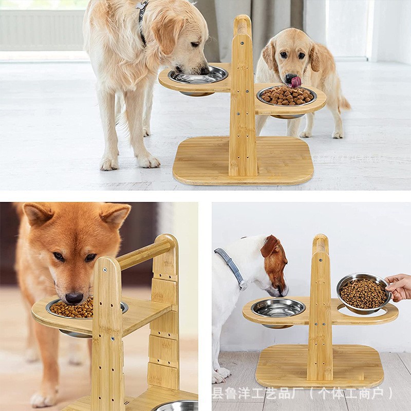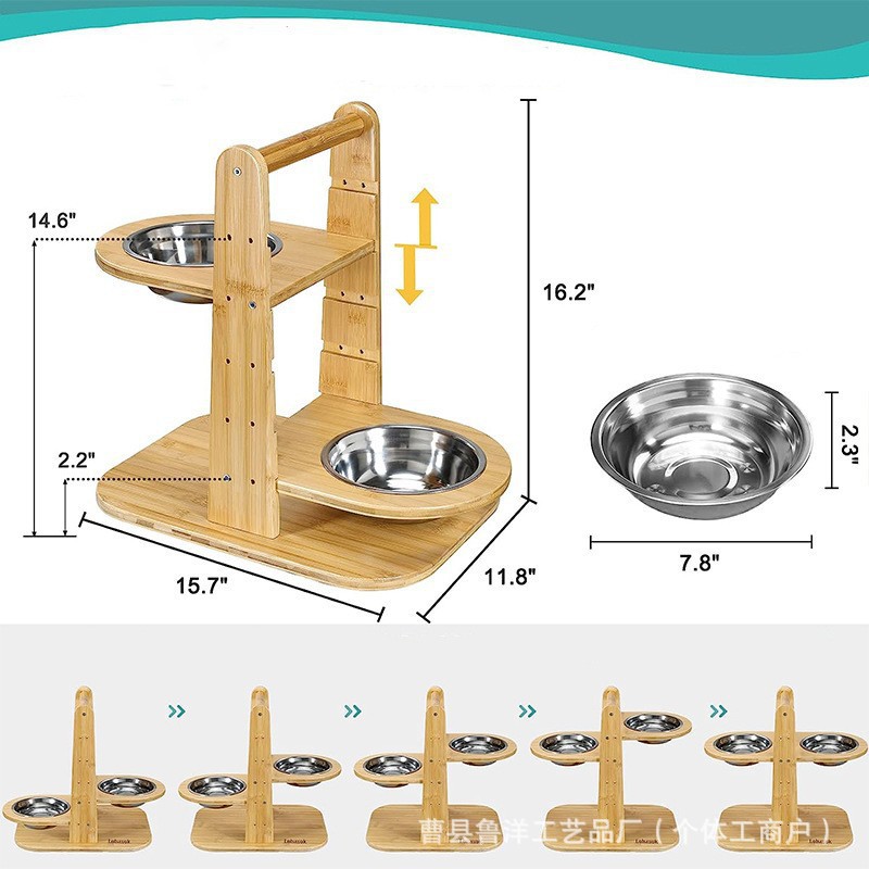 국경 간 목조 애완 동물 단단한 나무 고양이 그릇 랙 개 그릇 브래킷 피더 더블 레이어 개 그릇 높이 조절 가능한 그릇 랙스토어 가기
