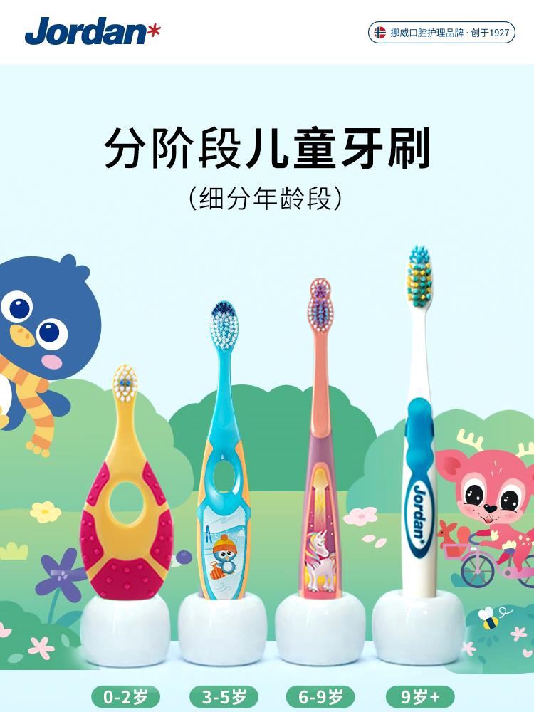 노르웨이 요르단 칫솔 아기 어린이 칫솔 부드러운 강모 우유 훈련 치아 스틱 칫솔 0-3-9 세 독립 팩스토어 가기