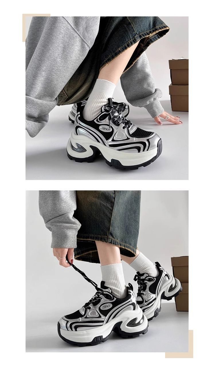 여성을 위한 작은 두꺼운 밑창 높이 증가 경량 아빠 신발 2025 새로운 여름 캐주얼 다목적 유행 패션 운동화스토어 가기
