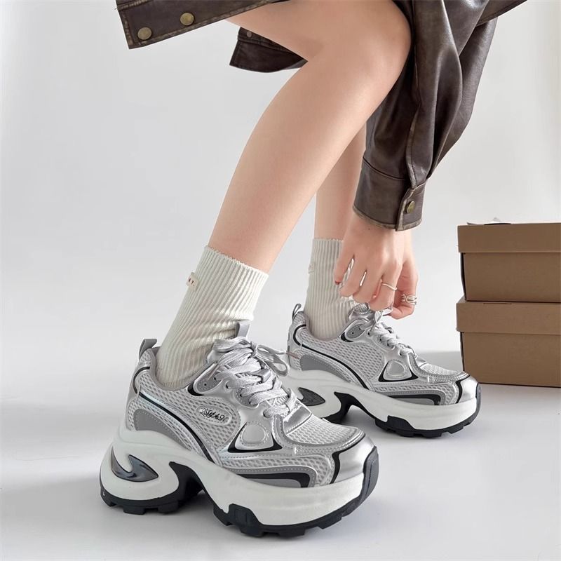여성을 위한 작은 두꺼운 밑창 높이 증가 경량 아빠 신발 2025 새로운 여름 캐주얼 다목적 유행 패션 운동화