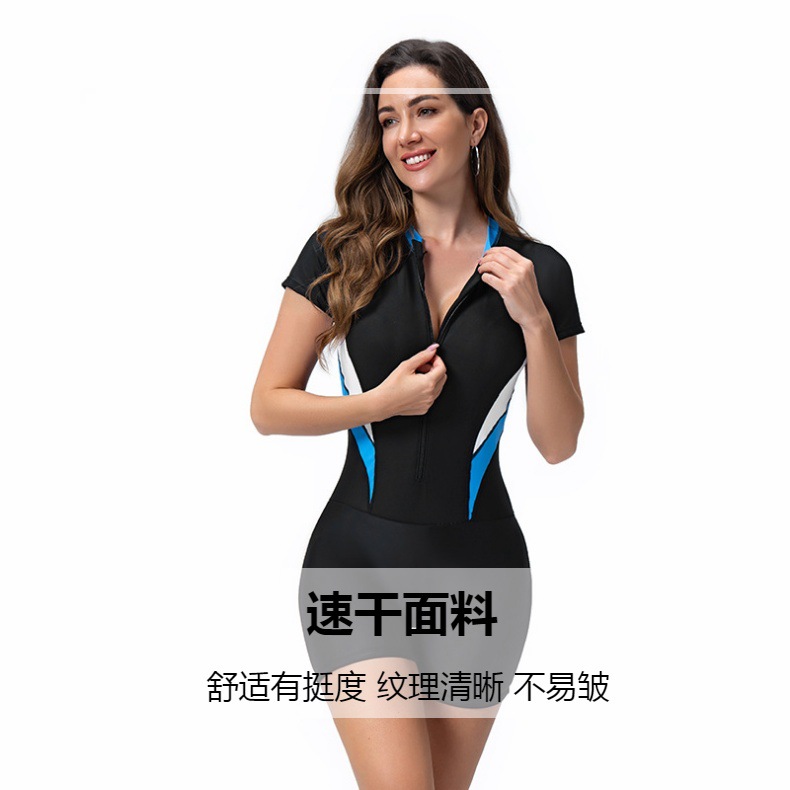 유럽과 미국의 수영복 여성 2025 새로운 서핑 슈트 스포츠 원피스 보수적 인 컬러 매칭 반팔 복서 수영복 AliExpress