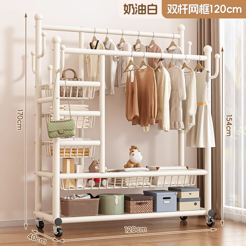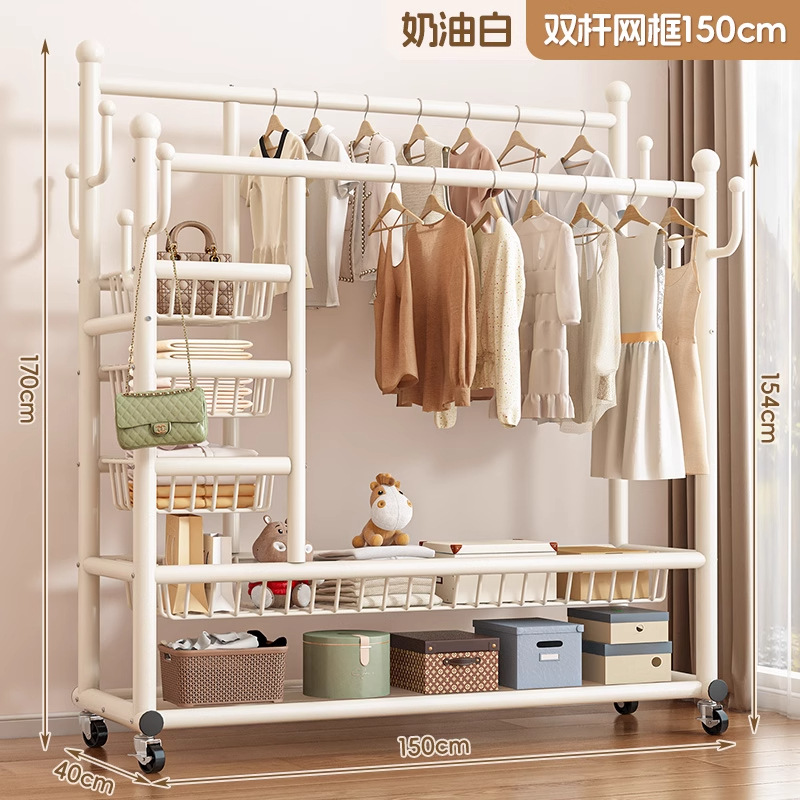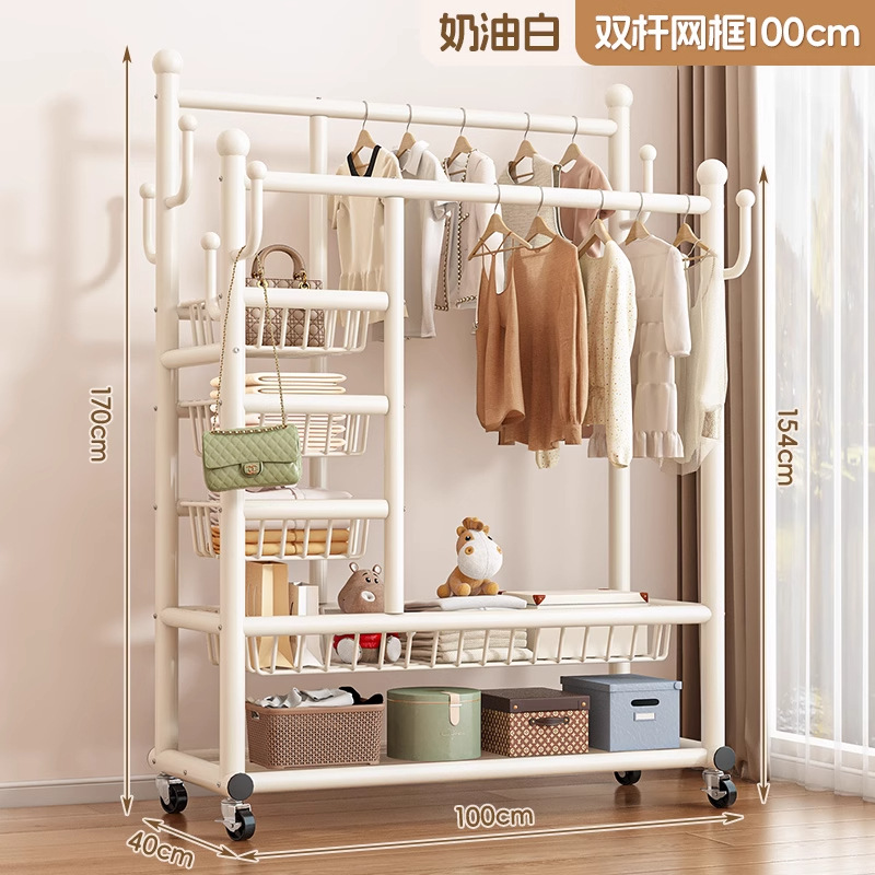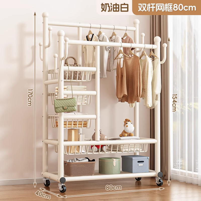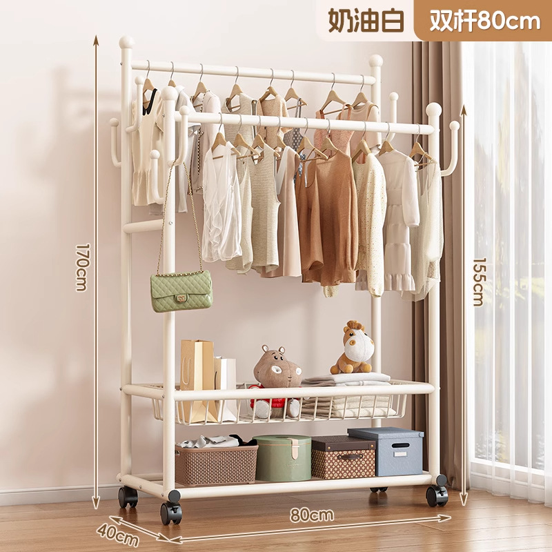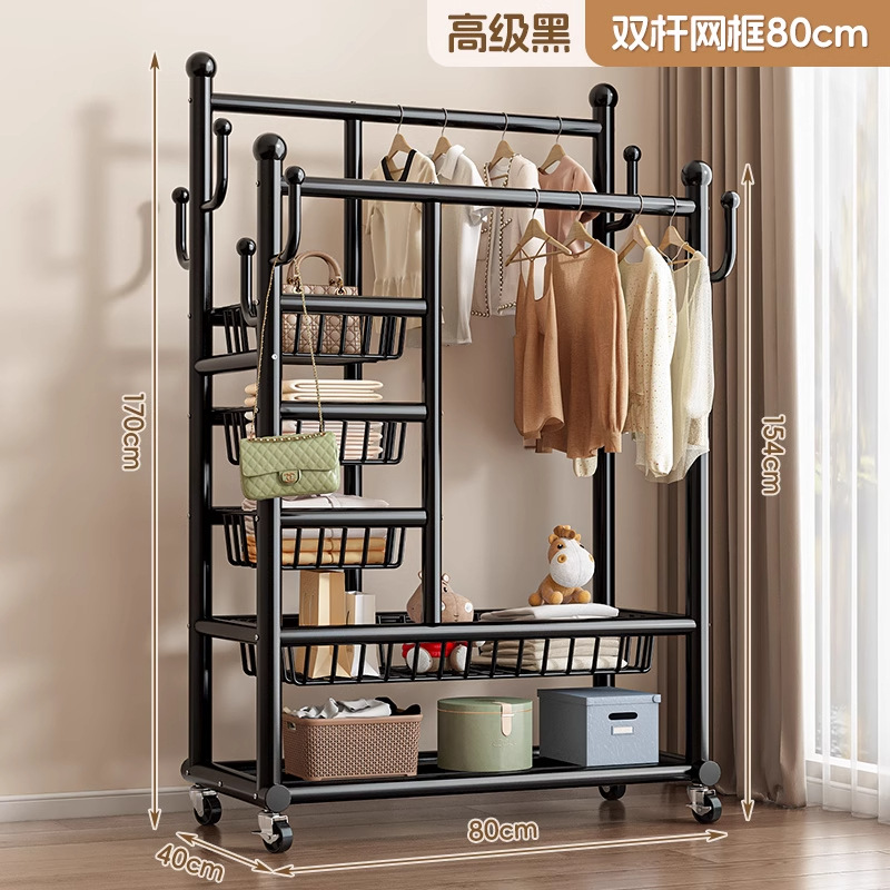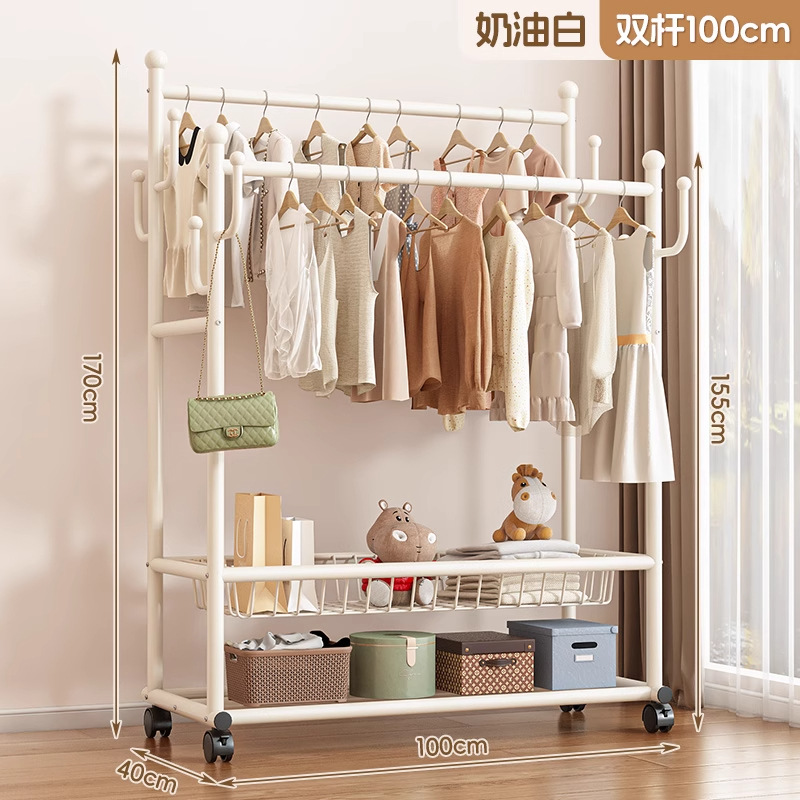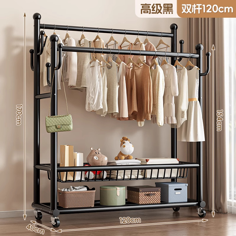 두꺼운 옷걸이, 수직 가정용 두꺼운 바닥 이중 막대 옷걸이, 다기능 두꺼운 침실 옷걸이스토어 가기