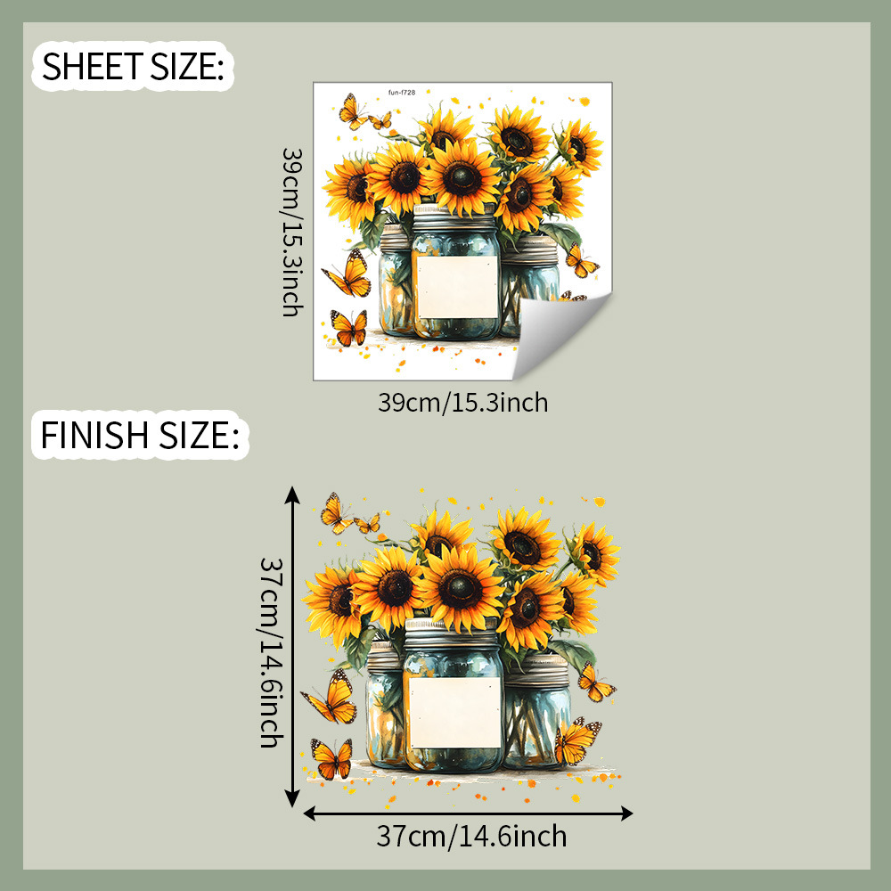 Fun-f728 그린 밝은 해바라기 꽃병 침실 거실 집 배경 미화 장식 벽 스티커 국경스토어 가기
