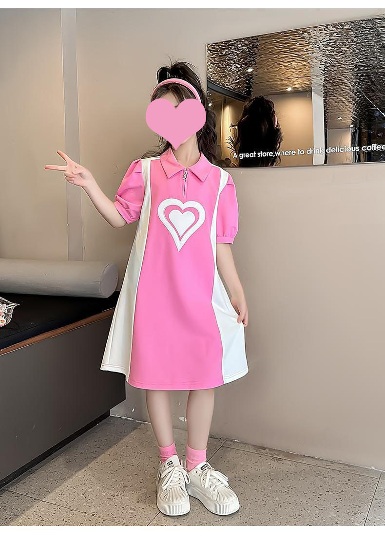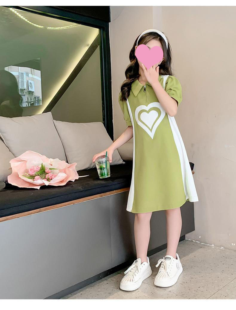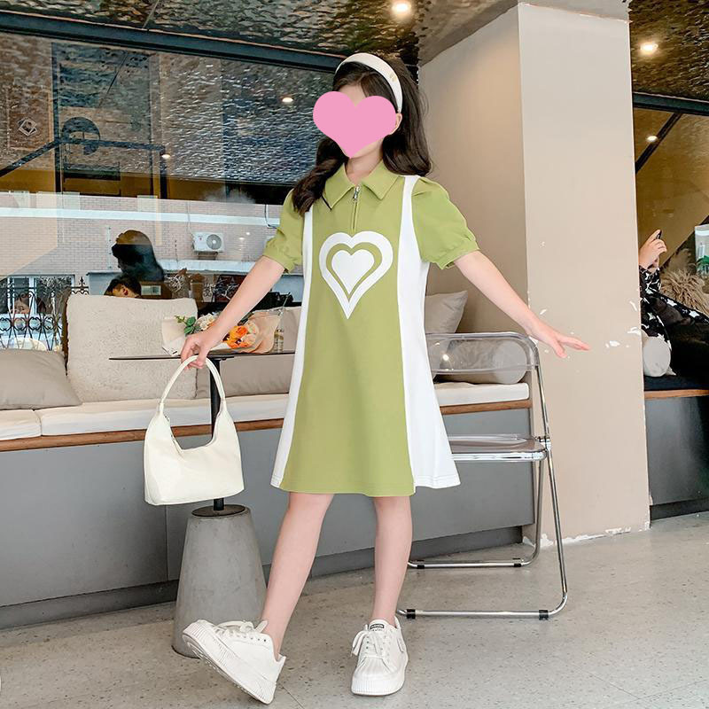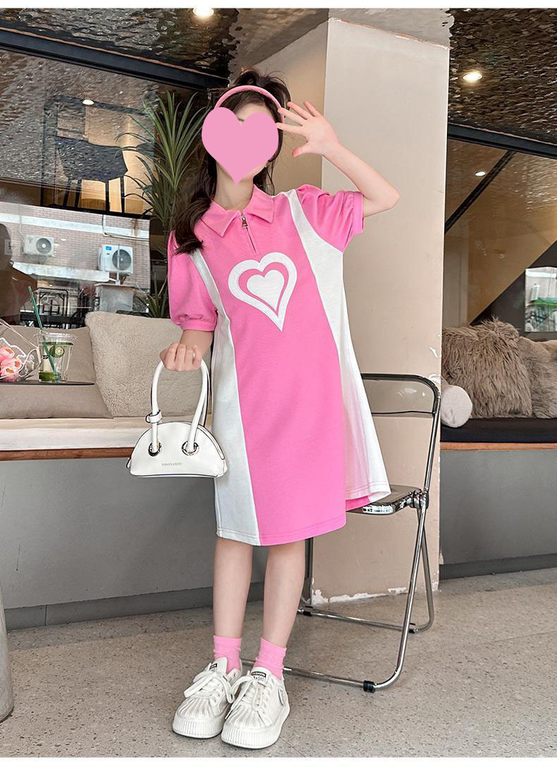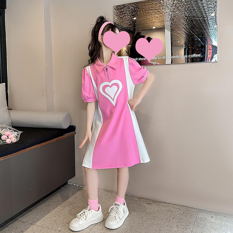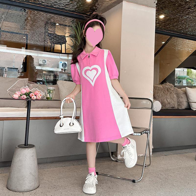 소녀 POLO 여름 2025 새로운 소녀 서양식 짧은 소매 스커트 얇은 어린이 작은 스타일 느슨한 원피스