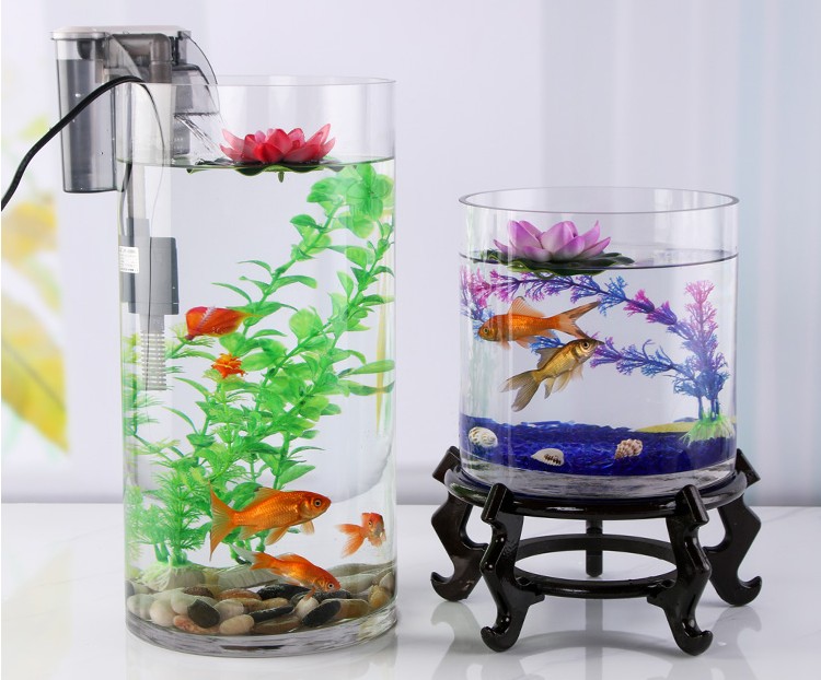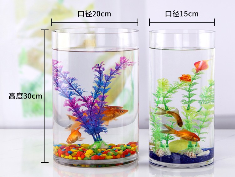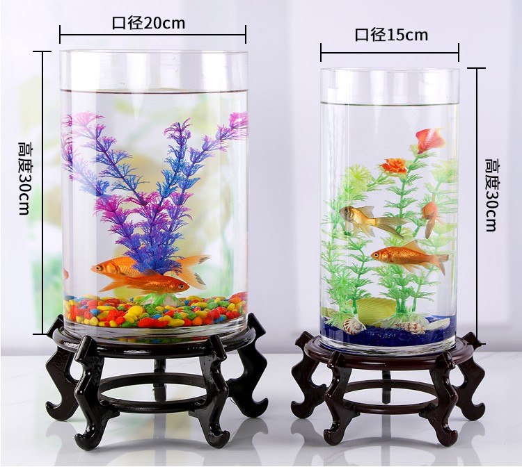 두꺼운 대형 유리 직선 물고기 탱크 원통형 투명 금붕어 탱크 사무실 데스크탑 홈 소형 원형 Lingche스토어 가기