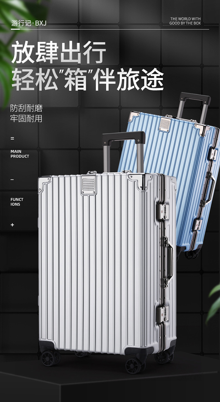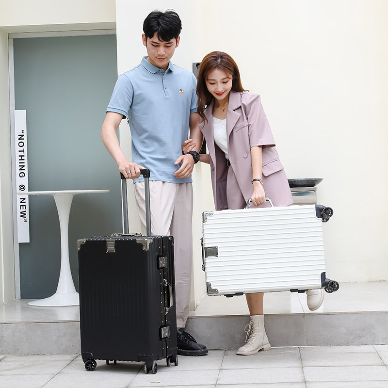 남학생을 위한 여행가방, 대용량 알루미늄 프레임 비밀번호 상자, 여성용 여행가방, 튼튼하고 내구성이 뛰어난 두꺼운 트롤리 케이스, 범용 바퀴스토어 가기