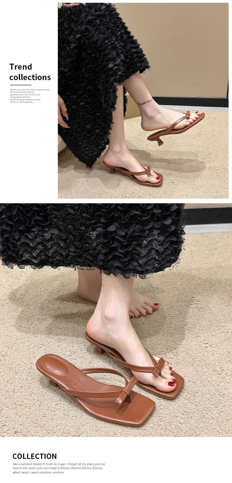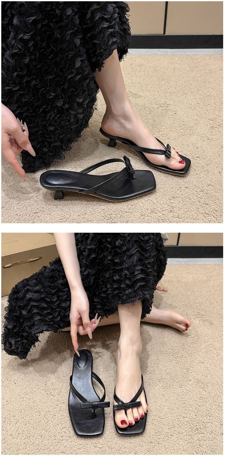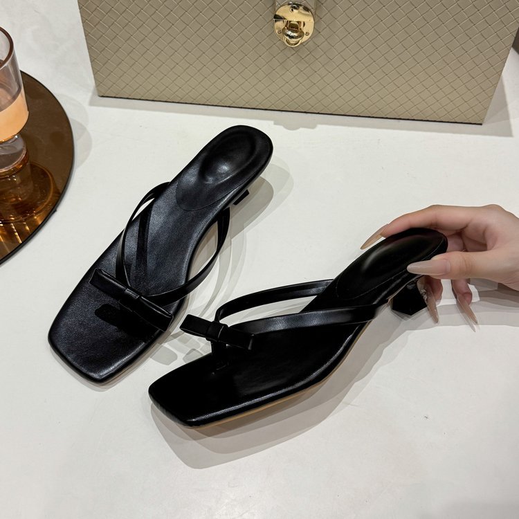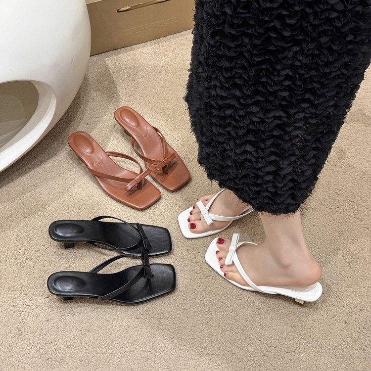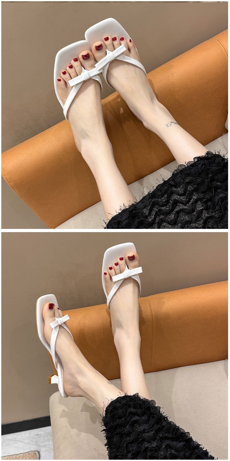 2025년 여름 신상 대외 무역 대형 플립플롭 여성용 아우터웨어 보우 하이힐 패션 샌들스토어 가기