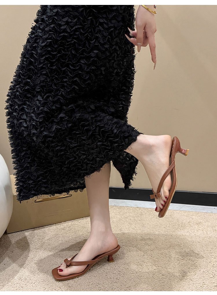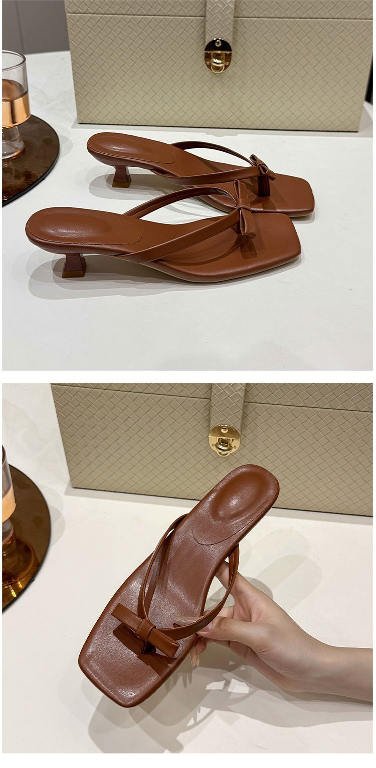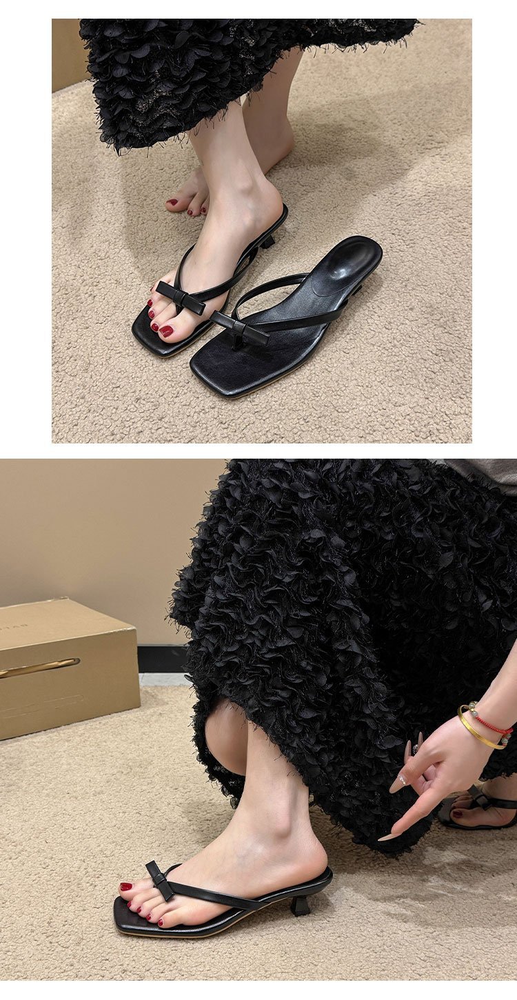 2025년 여름 신상 대외 무역 대형 플립플롭 여성용 아우터웨어 보우 하이힐 패션 샌들