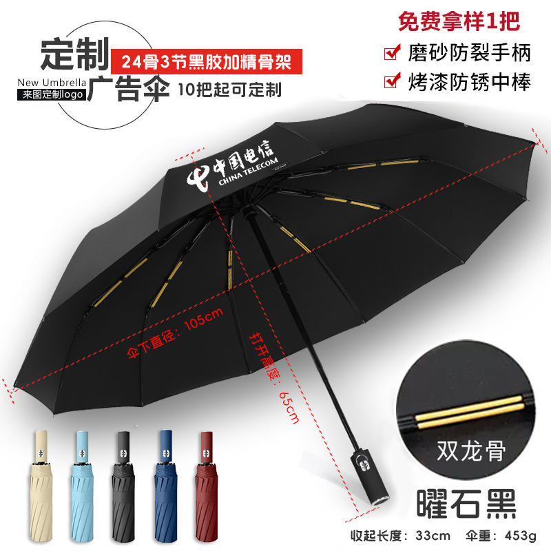 • 자동 24본 확대 이중 용골 비닐 [흑요석 검정]