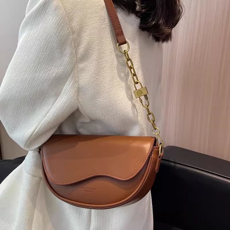 정품 가죽 올해 인기 안장 가방 여성 2025 뉴 어깨 크로스바디 스타일라인 언더암 가방
